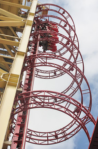 Dan wordt het tijd voor de Rock It achtbaan. We hebben al gezien dat we hier loodrecht omhoog gaan en steil naar beneden, gevolgd door een looping en een halve kurketrekker. Dat is wat we van buitenaf kunnen zien! Ook hier is nog niet zo’n lange rij, dus we kunnen al snel instappen. Als we omhoog worden getrokken, denk ik bij mezelf ‘wat omhoog gaat, moet ook weer naar benee!’ en voordat ik uitgedacht ben, worden we in duizeligmakende snelheid naar beneden gegooid! Het gaat hard en voor mijn gevoel duurt het ontzettend lang, maar het is dan ook een mega achtbaan. Als we eruit komen, liggen we helemaal strak door de enorme rush. We hebben ook allebei een zere keel door het schreeuwen. En we besluiten meteen om later nog een keer te gaan.