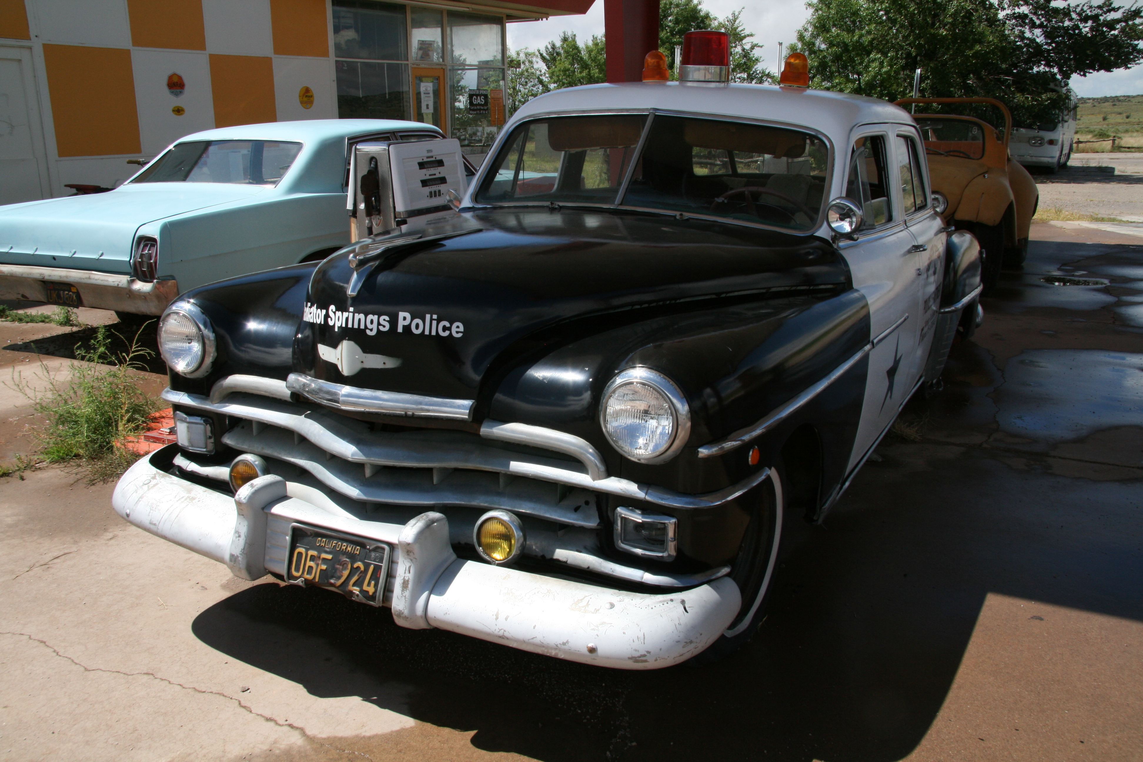 Uiteindelijk komen we bij Grand Canyon Caverns aan en maken daar een pitstop. Er staan wat oude auto’s en Monique gaat wat foto’s maken. Ik blijf bij de auto en probeer maar weer eens om de iPod aan de praat te krijgen, maar helaas.