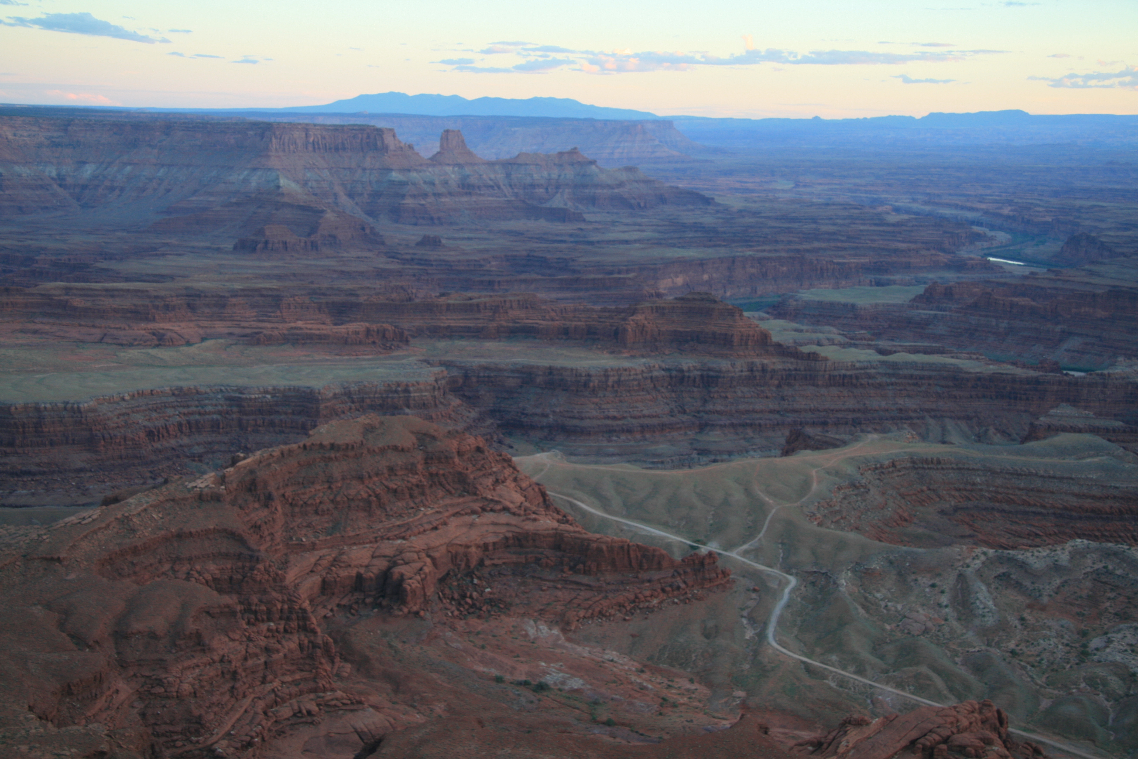We rijden naar Pasta Jay’s voor een pasta die werkelijk superlekker is. Na het eten springen we snel weer in de auto om naar Dead Horse Point State Park te gaan. Als we daar aankomen, doe ik de fee in een envelopje en word pissig als ik zie dat auto’s achter ons doorrijden zonder te betalen. Ik kan daar slecht tegen. Dus ik roep naar Monique dat ik een dubbel fee in het envelopje stop. Uit pure pissigheid geef ik op het envelopje aan dat ik dubbel betaal voor die auto die door gereden is!