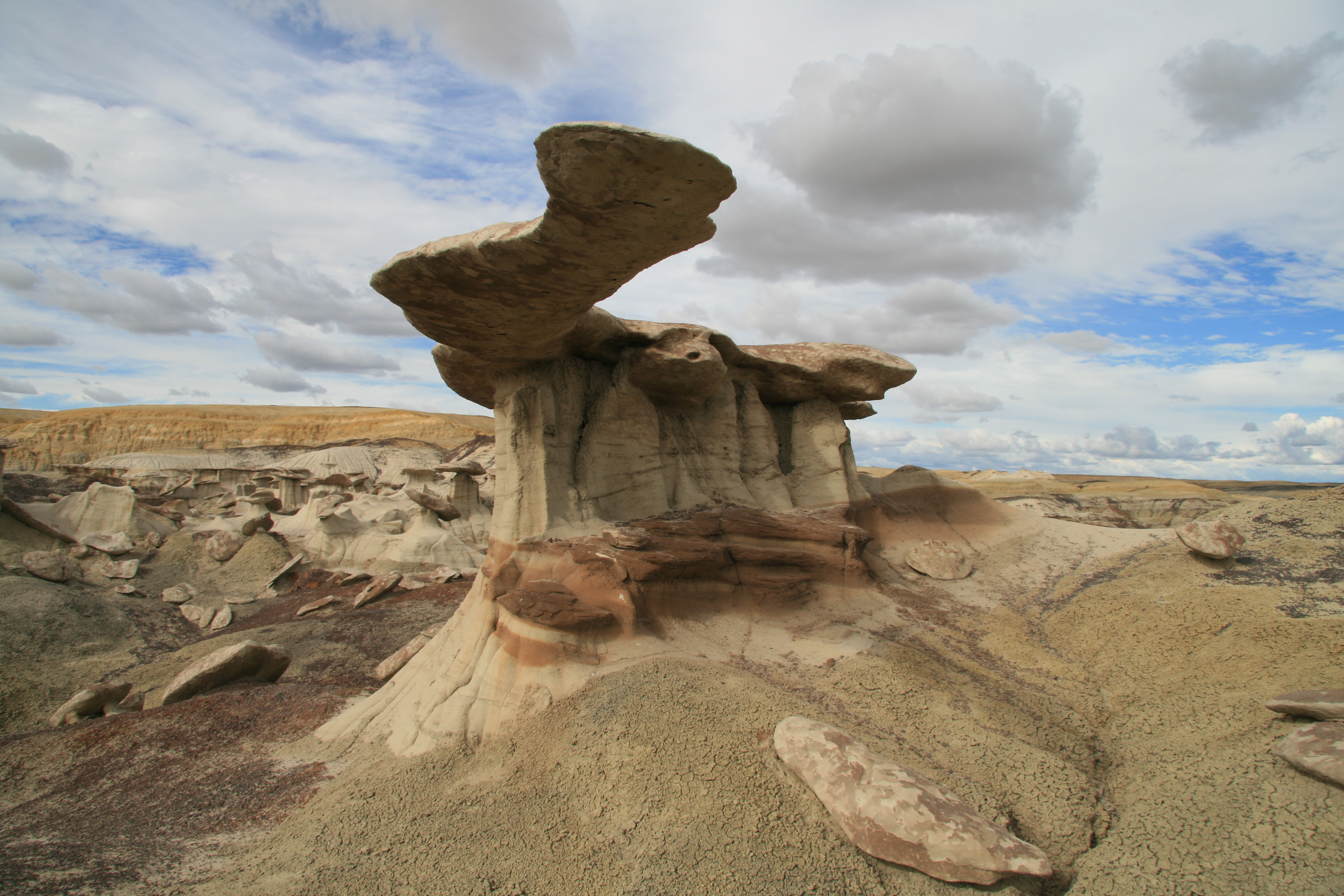 We zijn weer bijtijds op, “genieten” van een rubberen roerei en gaan dan snel op weg. Twee jaar geleden zijn we bij Bisti Badlands gweest en nu willen we naar een gebied dat nog iets verder weg ligt, Ah-Shi-Sle-Pah. We gaan op zoek naar de King of Wings!