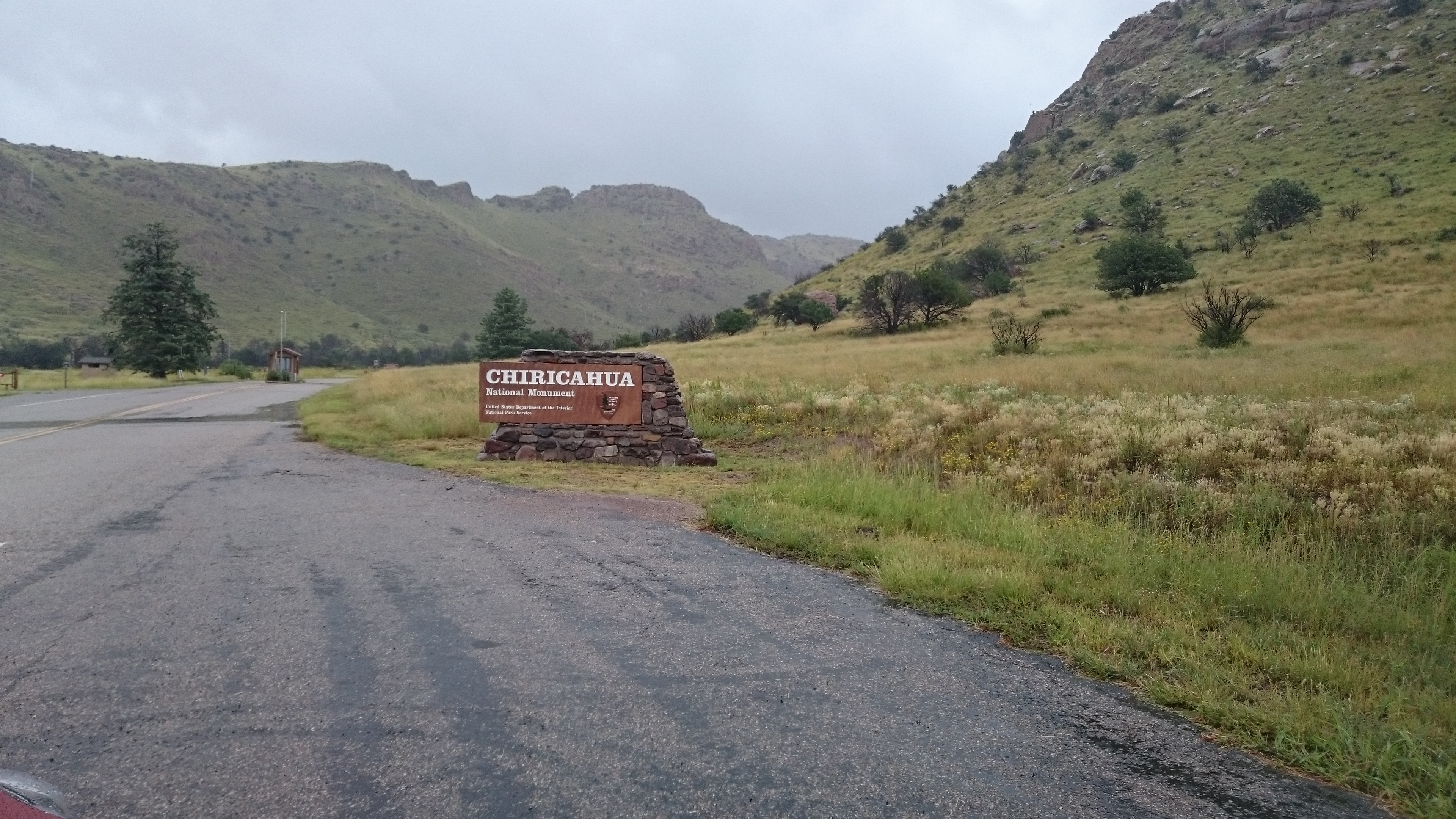 Op de planning van vandaag staat Chiricuhua National Monument. We zijn hier nog nooit geweest en we hebben een hike van zo’n 14 kilometer op het programma staan. Ik vrees het ergste, maar we bijven positief, ook als we het meest waardeloze weer hebben onderweg.