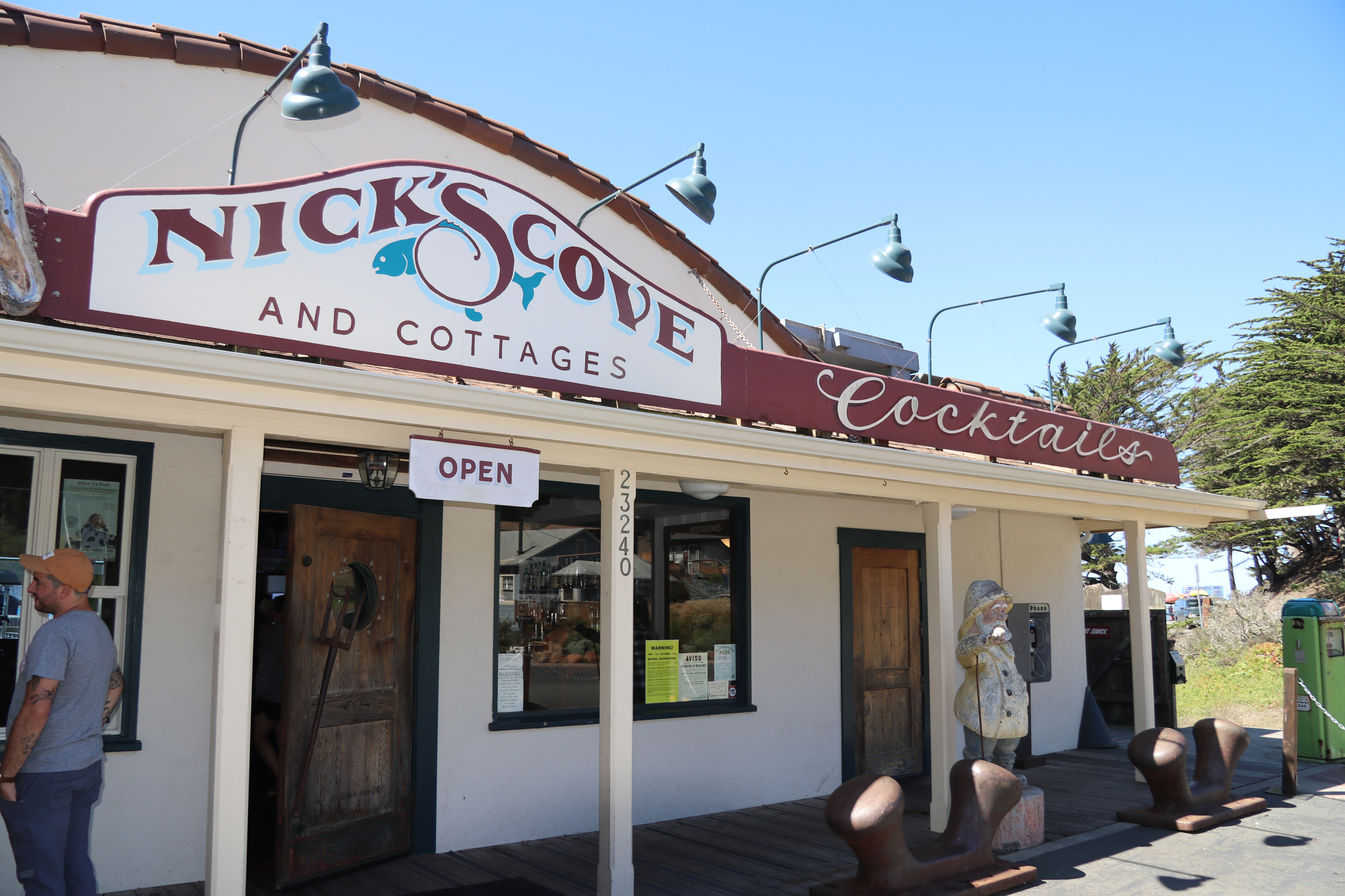 Als we bij Tomales komen, zien we daar de eerste restaurants waar oesters worden gekocht. Die wil ik weleens proberen. Monique vindt het een matig idee, maar het avontuur lonkt, dus uiteindelijk gaat ook zij overstag. Bij Nick’s Cove Seafood stoppen we en gaan eens kijken wat er zoal te krijgen is.