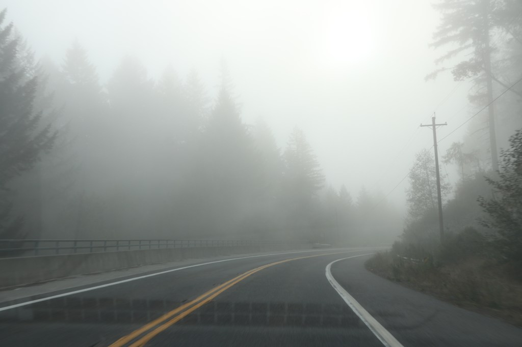 Al snel laten we het forenzenverkeer achter ons en cruisen met een rustig gangetje over de CA 299 als Monique plotseling ‘Hee joh!’ roept. Vlak voor ons rent een zwarte beer de weg over. Helaas blijft de beer niet even netjes poseren op de weg, maar verdwijnt ie weer heel snel in het struikgewas. Geen foto dus.
