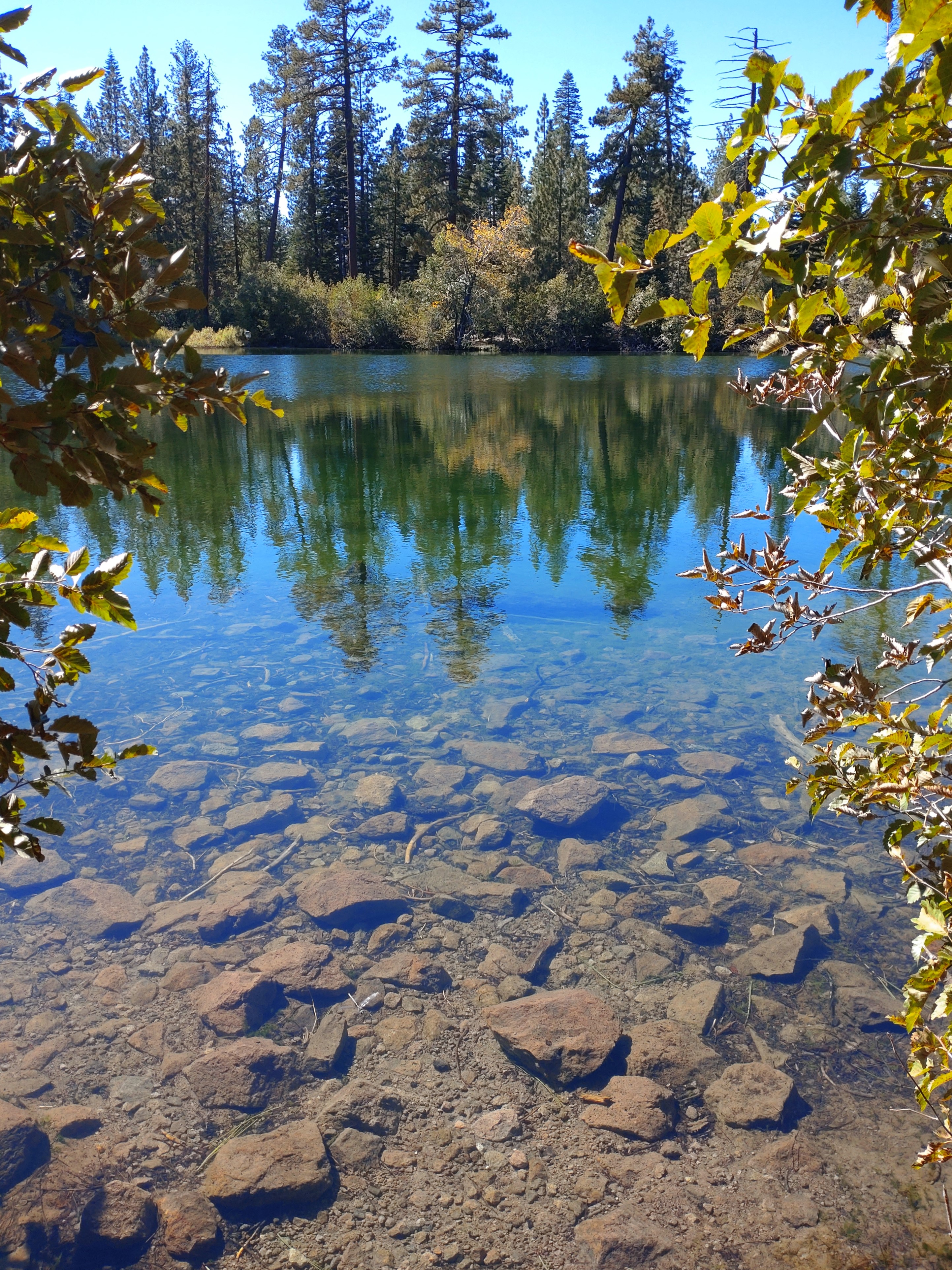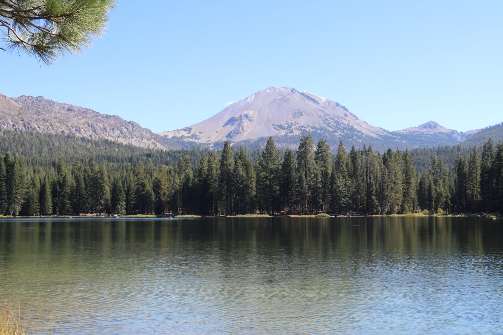 Na de lunch rijden we naar de noordwest uitgang van het park. Hier willen we nog de Manzanita trail lopen. Die gaat rond het meer en is zo’n 3 kilometer lang. Een groot voordeel is dat de trail geen hoogteverschil heeft.