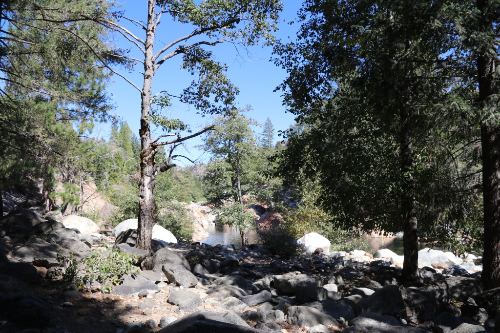 Tijd om weer een stuk terug te lopen. Dit keer pakken we de goede trail weer op en lopen langs Azalea Lake. Vandaar lijkt het nog een klein stukje, totdat we ineens een paar hele grote vrachtwagens zien staan. Ehm… die stonden niet op onze parkeerplaats.