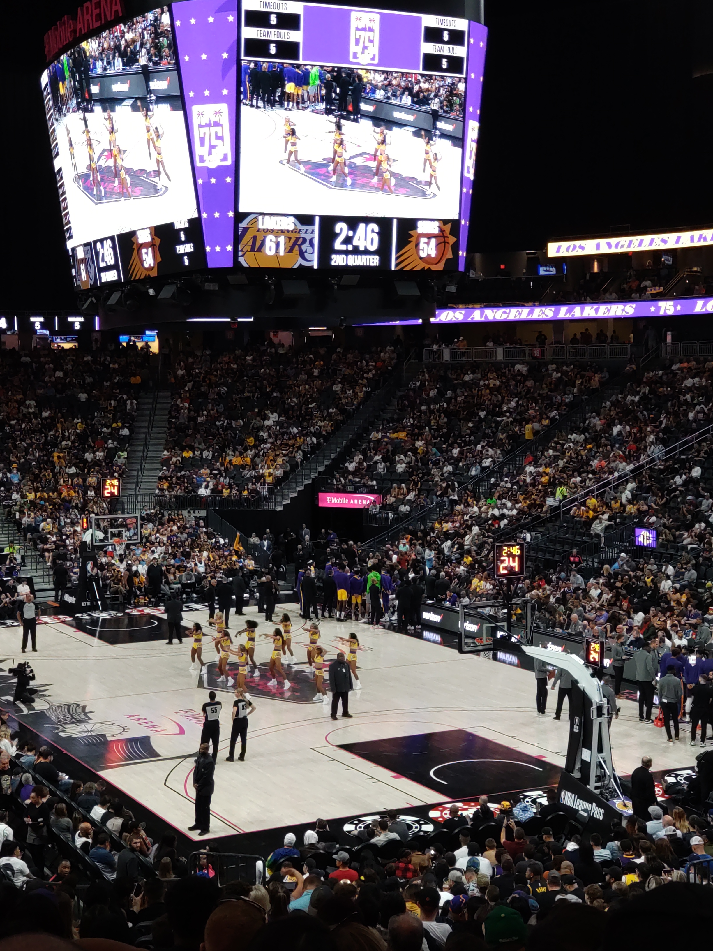 We genieten van de wedstrijd en van de mensen om ons heen. Ook al verliezen de Lakers, er valt geen onvertogen woord. Dat verbaast me iedere keer weer.
