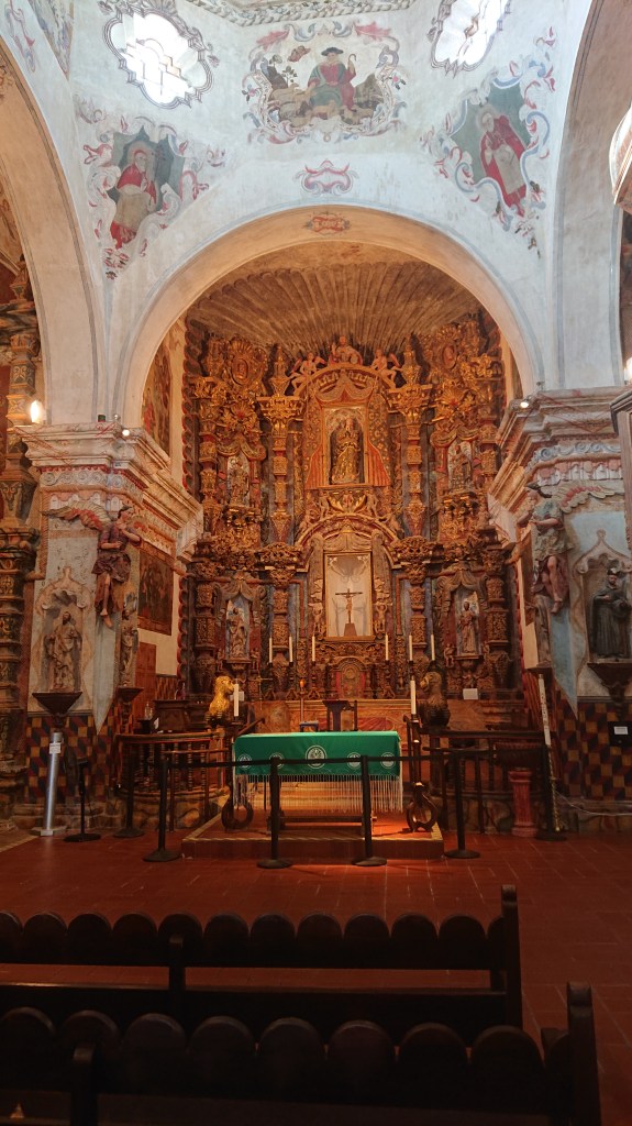 Snel rijden we door naar de Mission, waar we iets over half 4 aankomen. Deze Mission staat bekend als een van de beste voorbeelden van de baroque architectuur in de Verenigde Staten. Het is niet de enorme pracht een praal die je vaker ziet in kerken of aanverwante gebouwen. Het komt heel ingetogen over op ons.