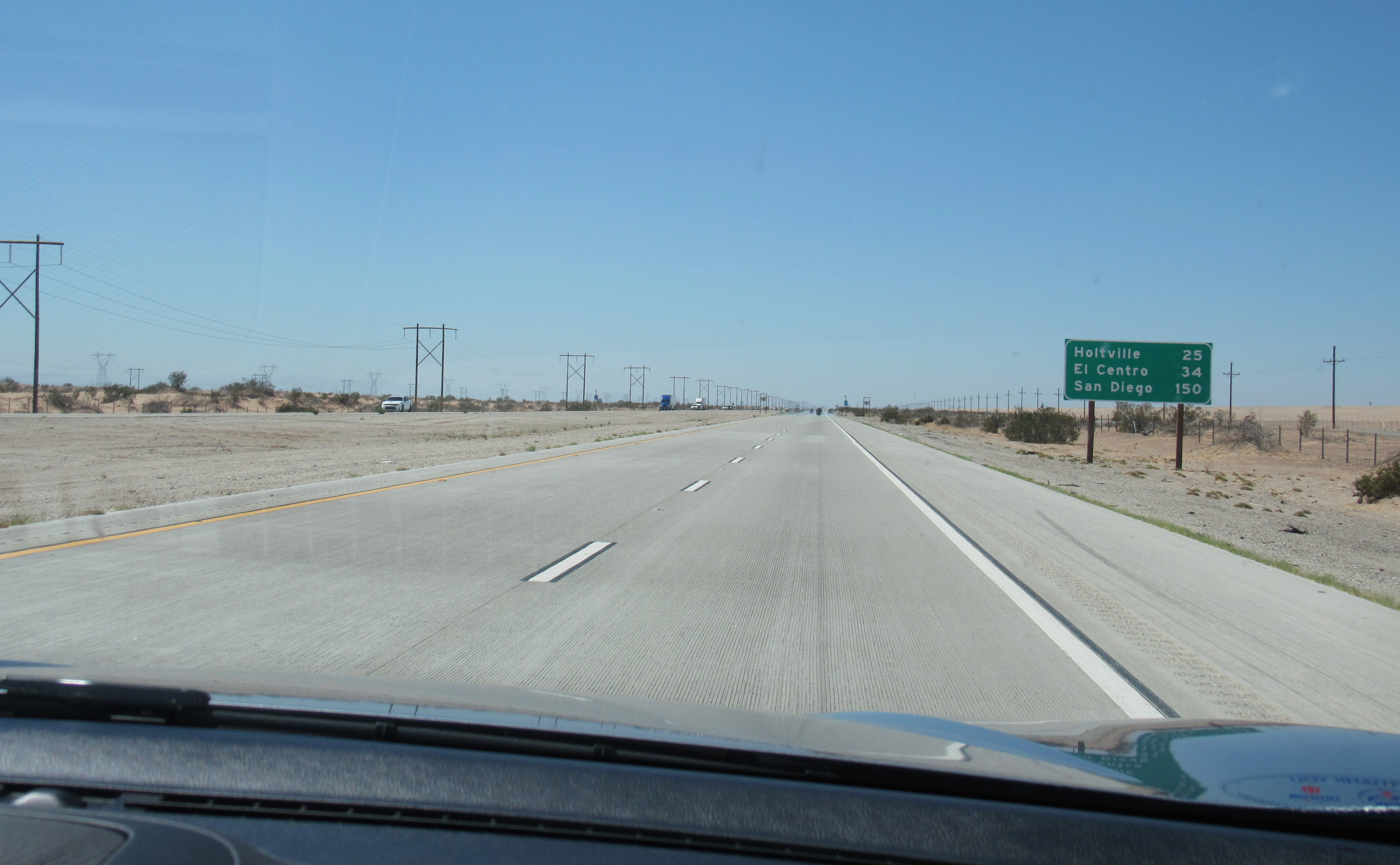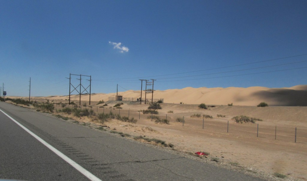 Via binnendoorwegen rijden we naar de I8. Deze interstate leidt rechstreeks naar San Diego en bijna tot onze eindbestemming. Het eerste stuk is ongelooflijk saai. In de verte zien we wel de bergen, maar om ons heen is het vlak en droog. Dat verandert als we al een flink eind op weg zijn. Ineens rijden we tussen zandduinen. Echt heel vreemd om te zien. Het lijkt de Sahara wel. Of op zijn minst Great Sand dunes National Park, maar dat ligt in Colorado.