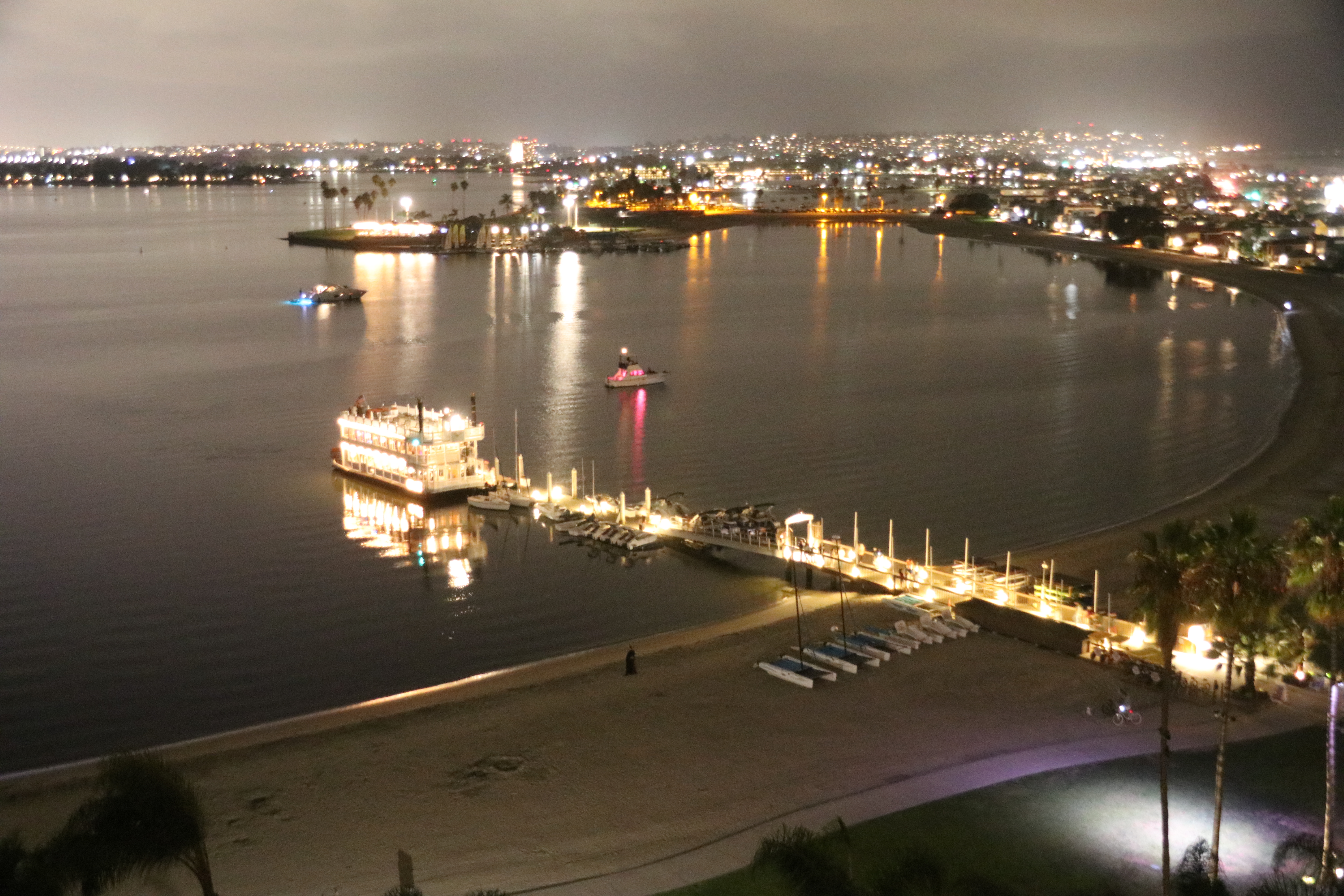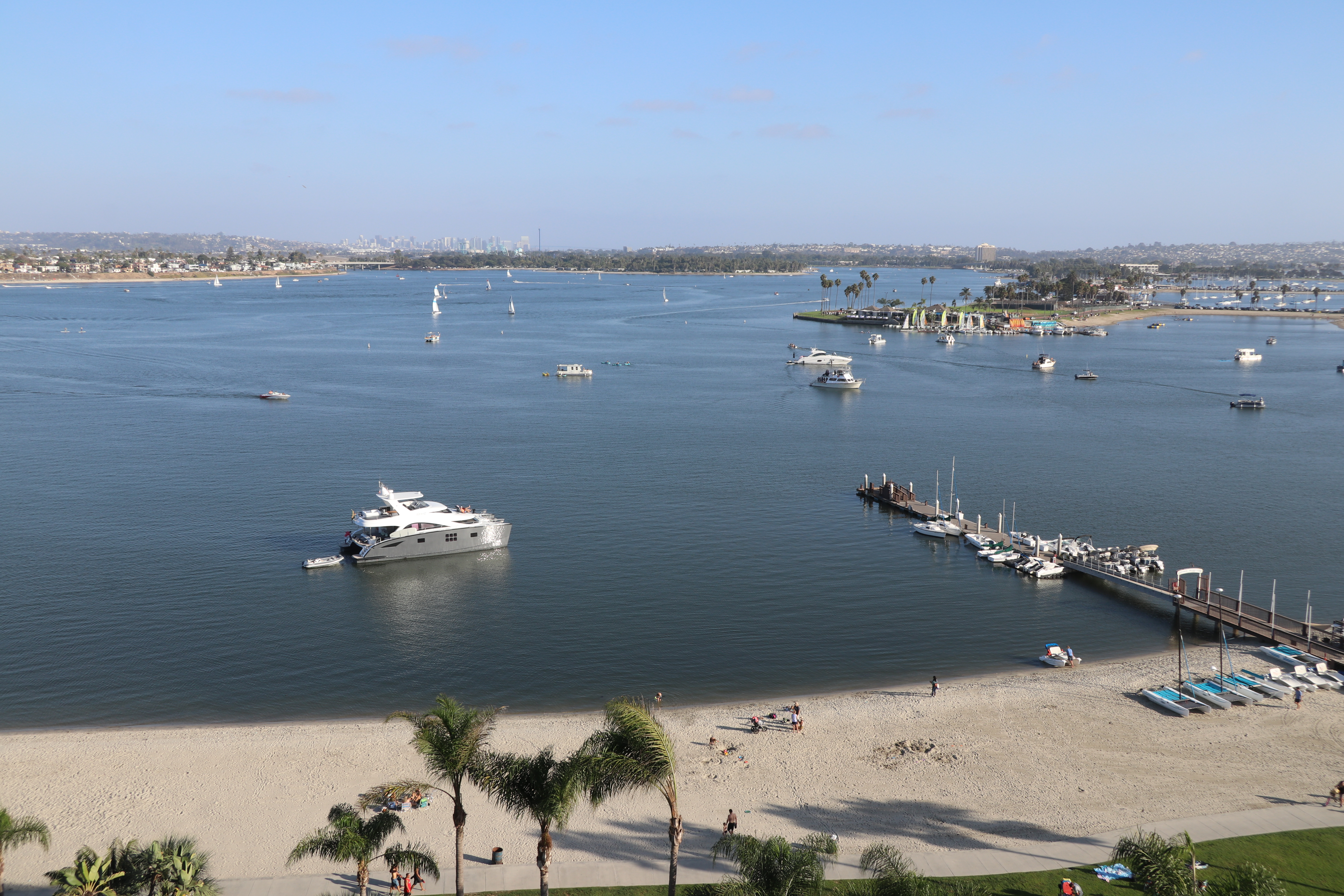 Als we zijn ingecheckt, parkeren we de auto en lopen met zoveel mogelijk zooi naar binnen. We hebben te horen gekregen dat we op de 12e verdieping zitten. Monique is verbaasd, want zij heeft een gardenroom gereserveerd. In de kamer zien we geen garden, maar wel een fantastisch uitzicht over de baai. De andere kant op zien we nog de Pacific Ocean. Het is echt 3 keer vallen en we zijn er.