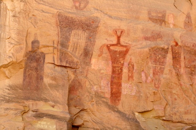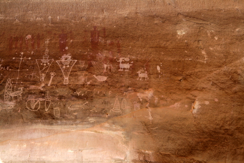 Via de I70 rijden we naar het oosten en slaan één afslag verder af. We gaan naar Sego Canyon, waar verschillende rotstekeningen te vinden zijn. Dit keer zijn ze van de Anasazi Indianen. Erg mooi, want sommigen zijn al van 7000 jaar voor Christus. Het is alleen zo jammer dat een stel vandalen ook zo nodig hun handtekeningen moesten achterlaten.