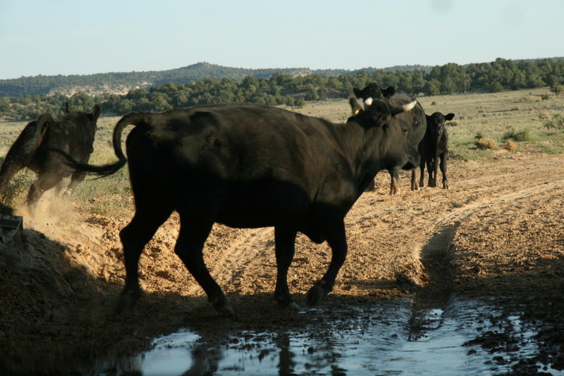 We slaan een paar keer rechtsaf en rijden onder de I70 door, terwijl een stel koeien (yum, angus beef!) ons meewarrig staan na te kijken. We rijden snel weer door, als we ineens verrast worden door een heel slechte weg. Voordat ik het in de gaten heb, hoor ik “KRGGGGGGG”…. OEPS!