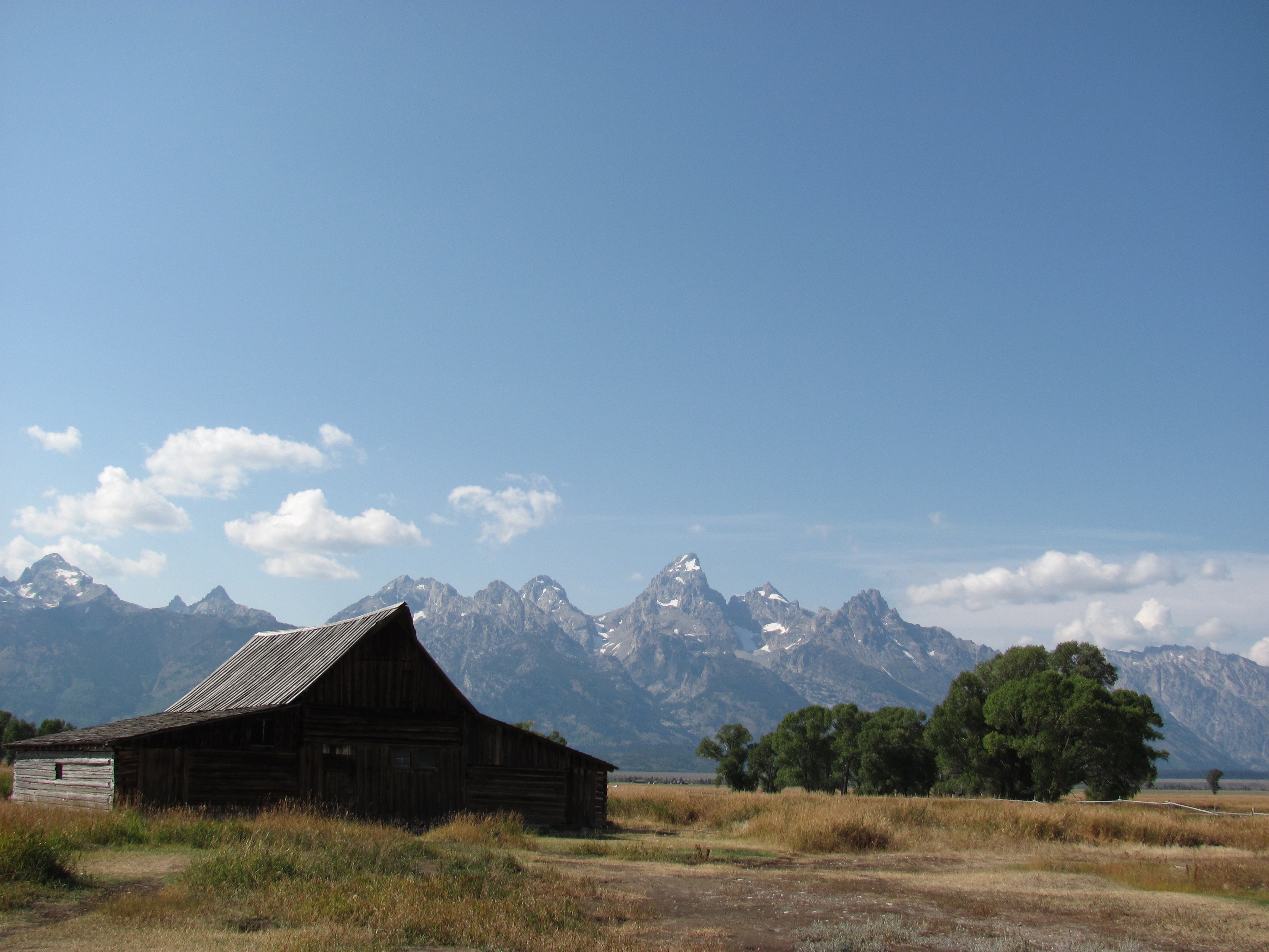 Nadat we de koffie hebben opgedronken, lopen we terug naar de auto. We gooien de rugzakken achterin, verwisselen onze schoenen en gaan op weg naar Mormon Row. Hier staan de meest gefotografeerde schuren (barns). De huizen en barns waren van een stel Mormonen die vanwege de droogte uit Utah vertrokken zijn en in Wyoming een nieuw leven zijn begonnen. Inmiddels zijn de Mormonen allang weer weg, maar de barns blijven fotogeniek!