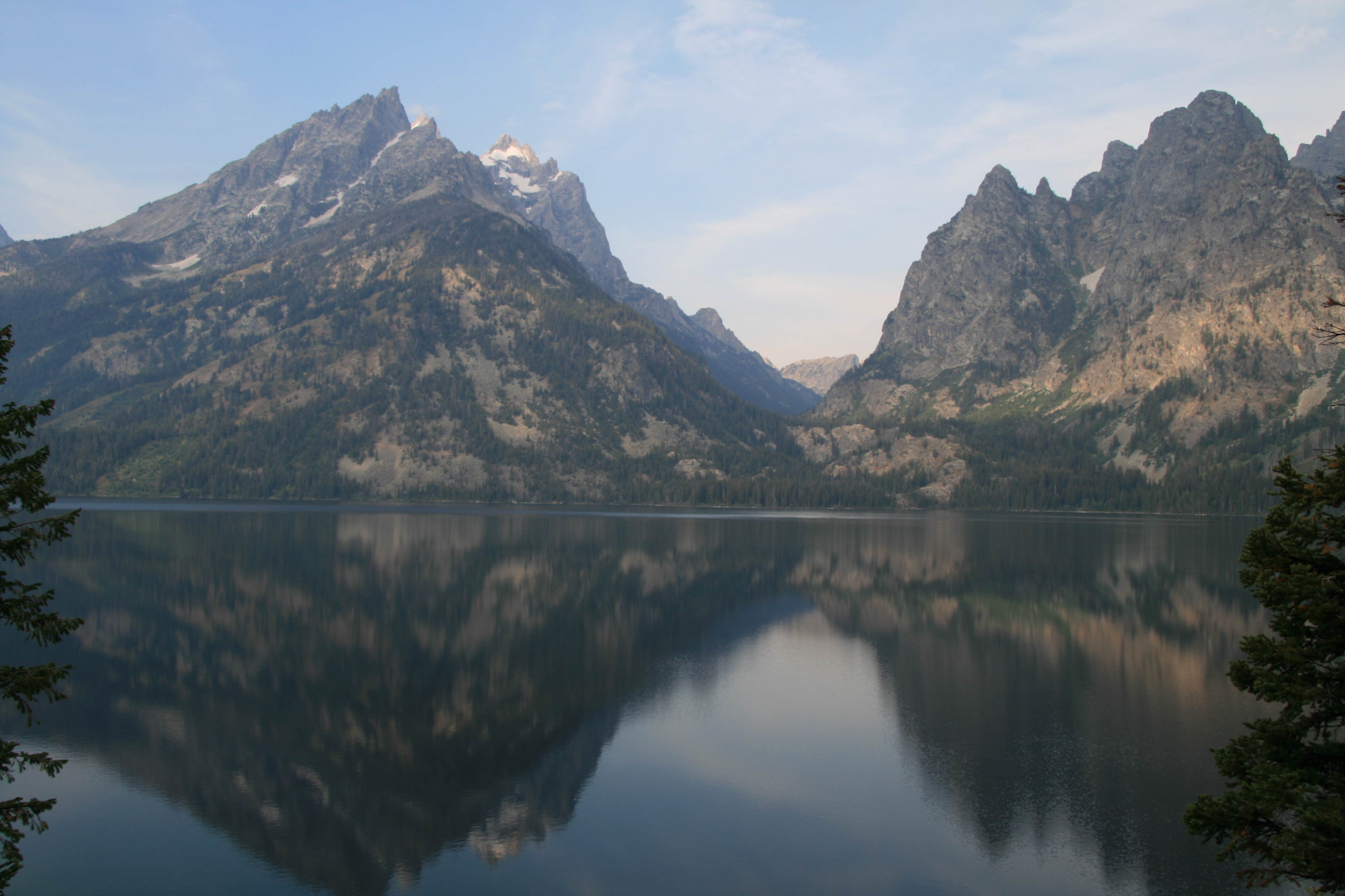 We rijden door naar Jenny’s Lake scenic drive and overlook en het weer lijkt wat op te knappen. Jenny’s Lake is prachtig in het ochtendlicht en we lopen het stukje naar beneden naar het meer. Ongelooflijk hoe helder het water hier is.