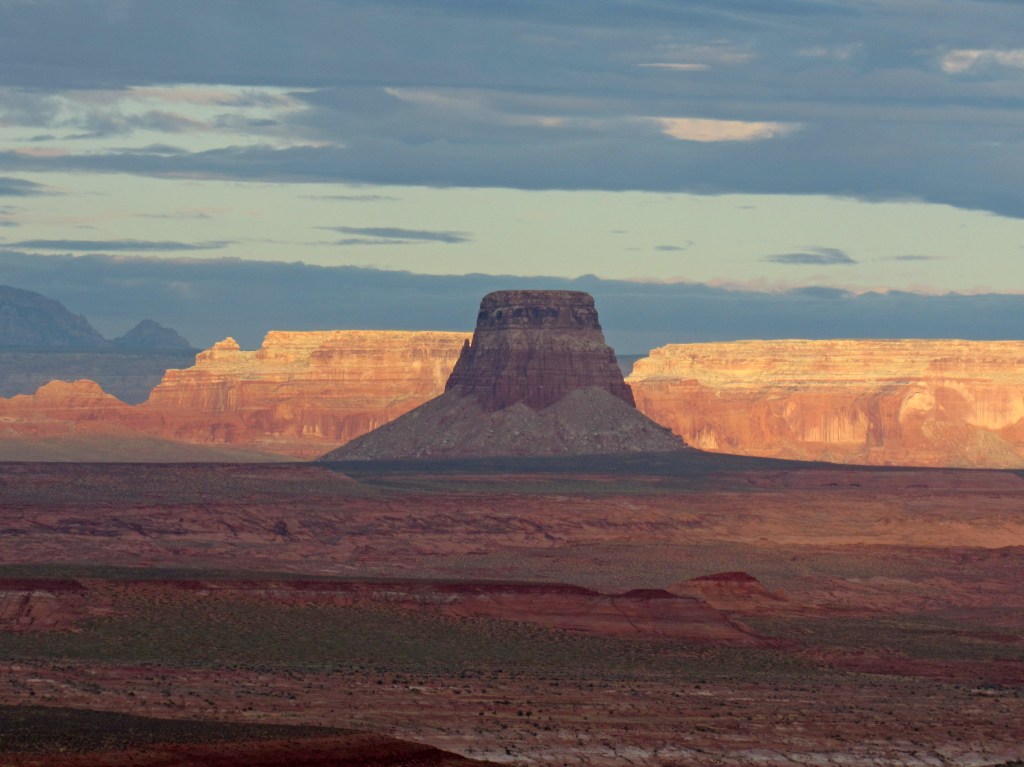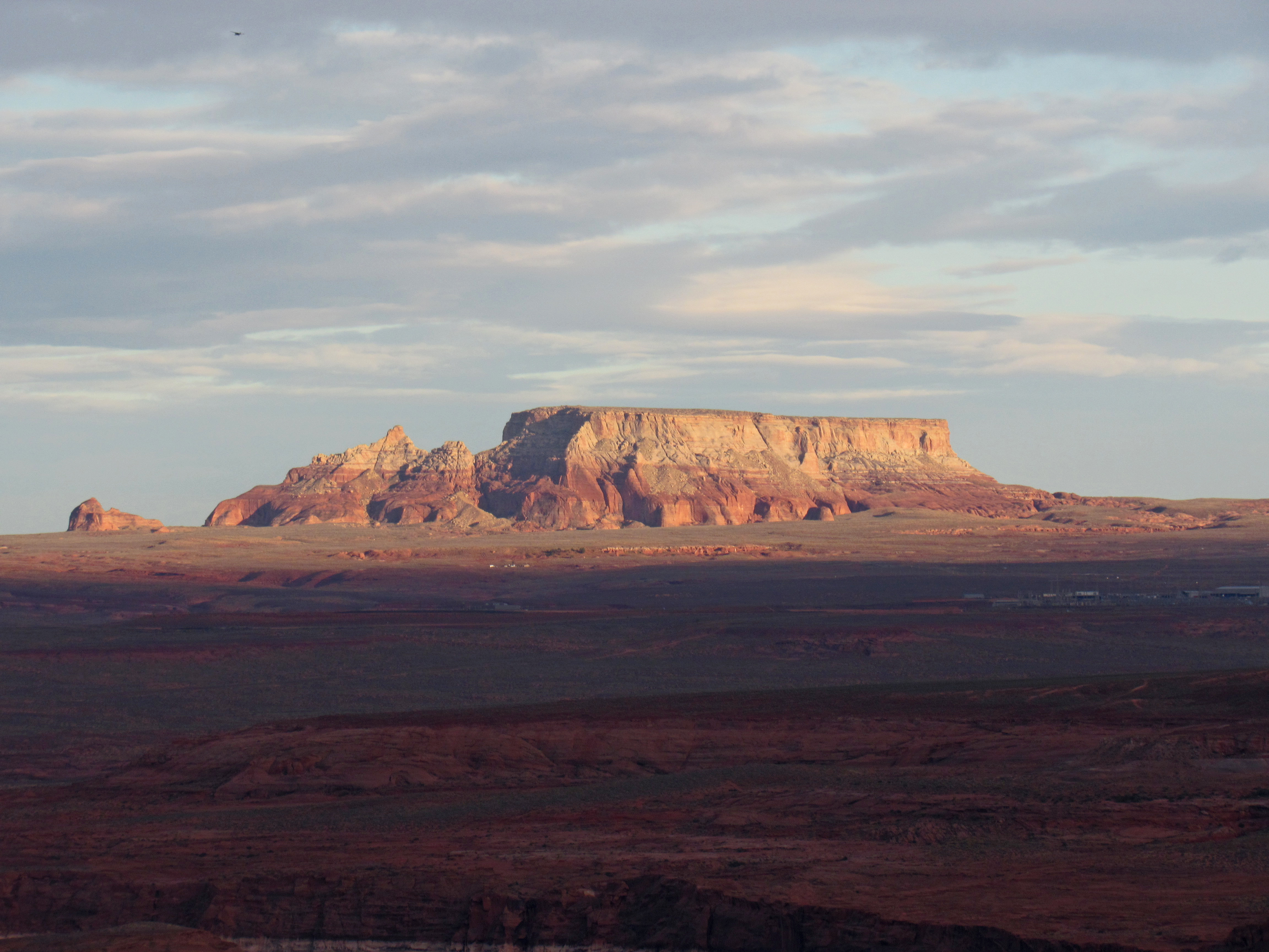 Zodra we genoeg plaatjes hebben geschoten, gaan we naar het uitzichtpunt over Lake Powell langs Highway 87, Wahweap. Bij dit punt zijn we al vaker geweest, maar we hopen nu een schitterende zonsondergang te gaan zien. Er zijn nog heel veel wolken die het licht mooi kunnen filteren.
