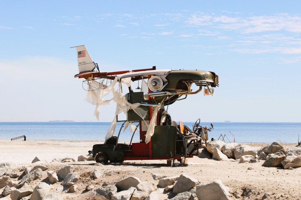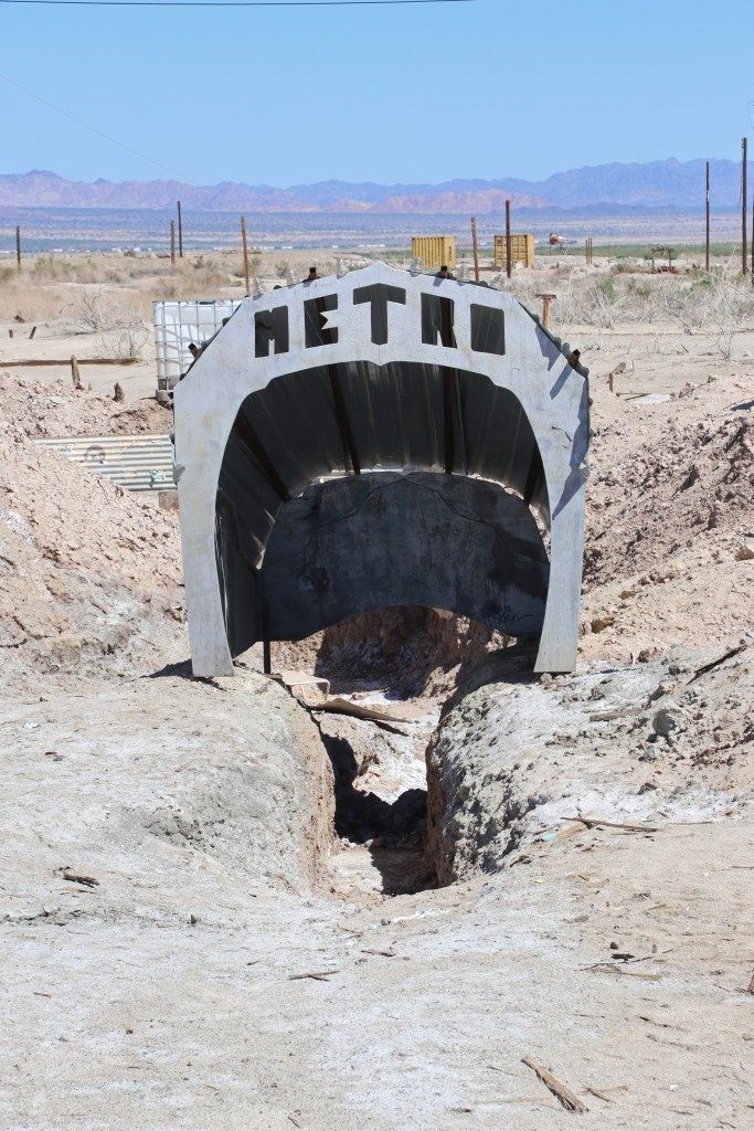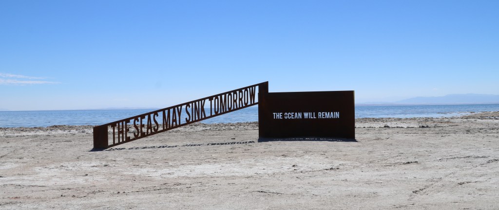 Voor diegenen die het niet weten, Salton Sea was ooit het vakantieparadijs voor de inwoners van onder andere LA. Het is een gigantisch meer, waar een aantal resorts zaten. Salton Sea heeft zoutwater, maar de zout concentratie was (is) zo hoog dat de vissen dood gingen. Vakantiegangers bleven weg en de resorts raakten in verval. Gek genoeg is het nog wel steeds een recreation area en staat er nergens dat je er niet kan zwemmen.