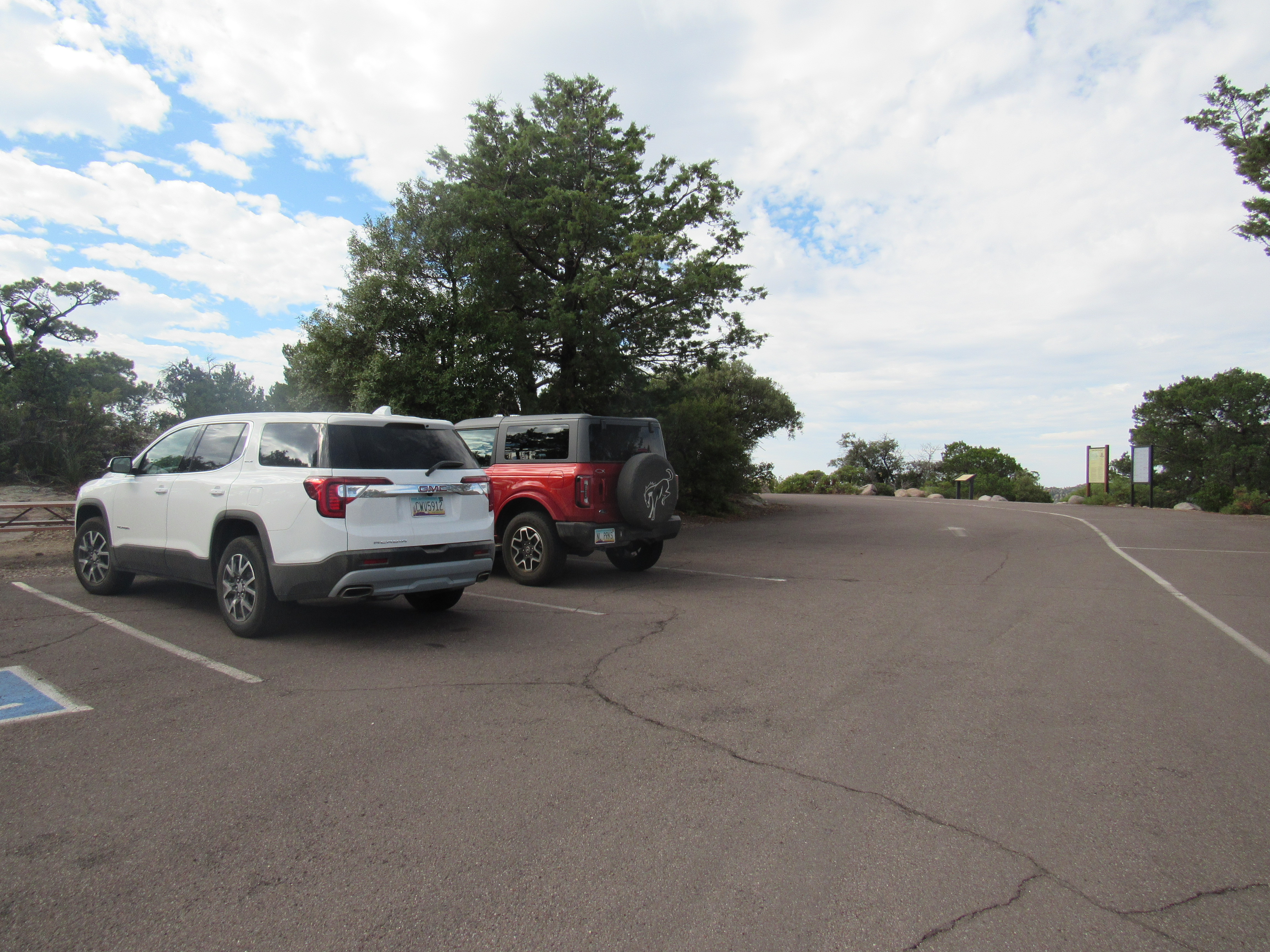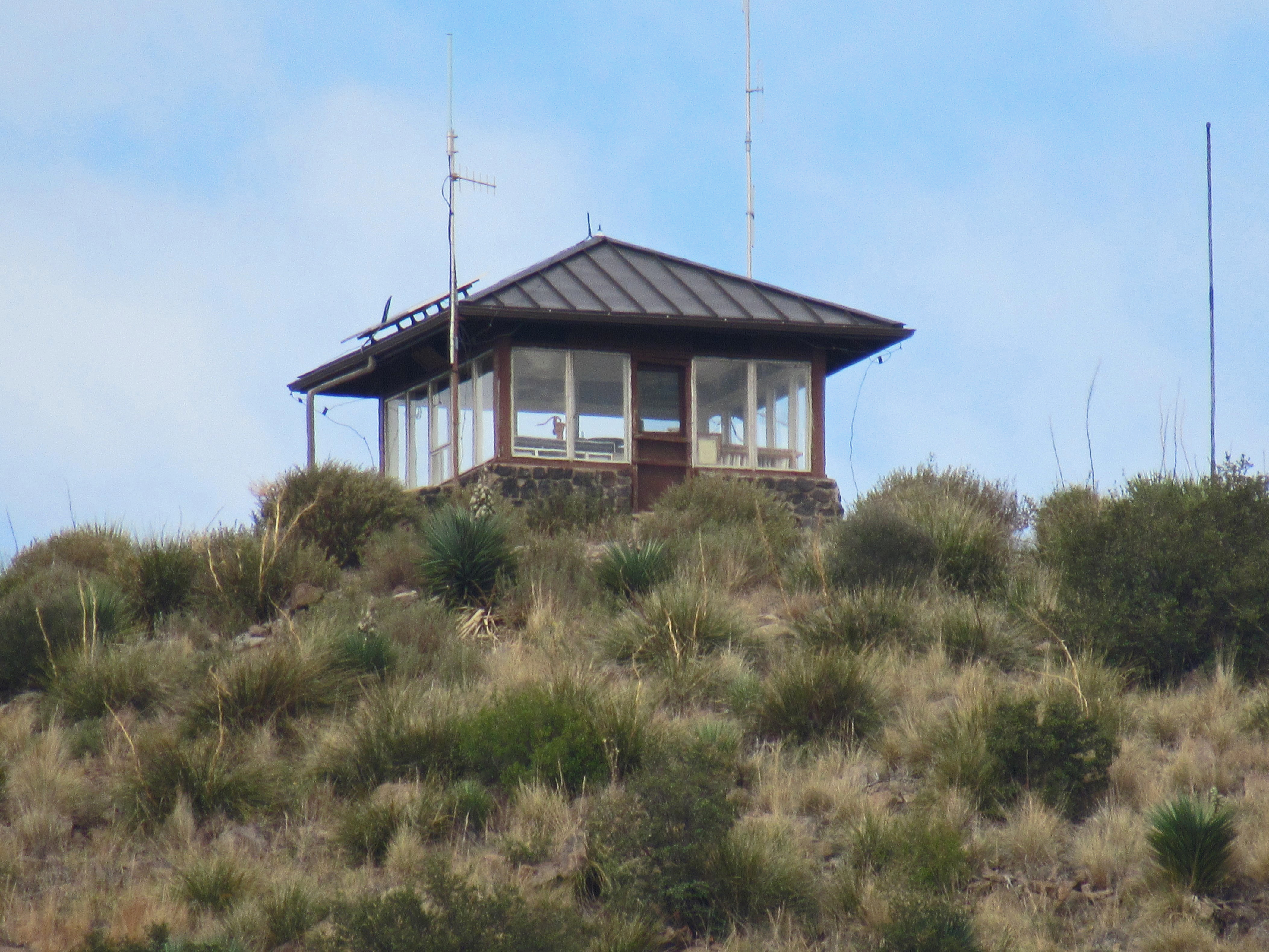 Als eerste rijden we naar Masai Point en lopen de interpretive trail nog een keer. Daarna lopen we een stuk de andere kant op. Als ik op dit punt naar boven kijk, zie ik boven op de berg een huisje staan. Dat blijkt het Fire Lookout te zijn.