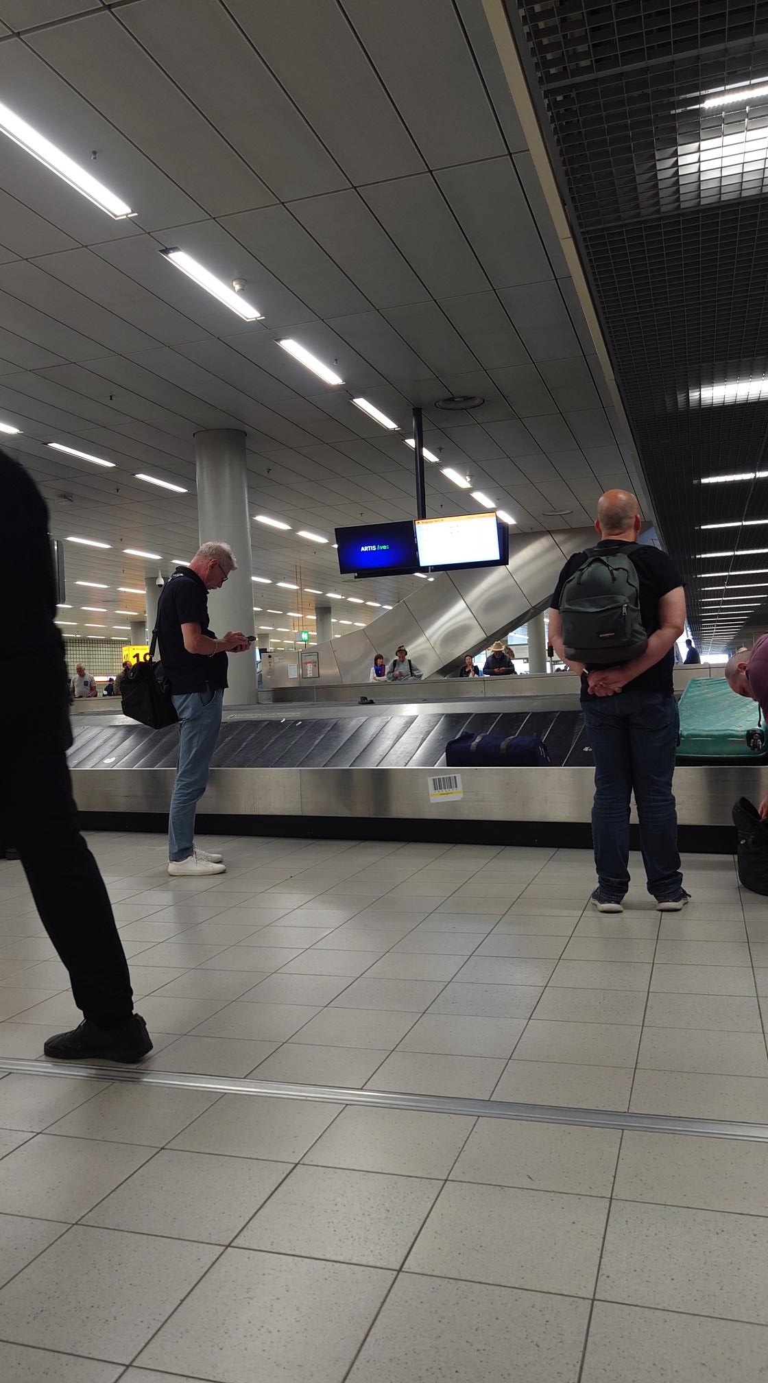 Na de landing staan we snel buiten en met Privium zijn we ook snel voorbij de lange rij bij de paspoortcontrole. Zelfs de bagage komt, voor Schiphol begrippen dan, redelijk snel.