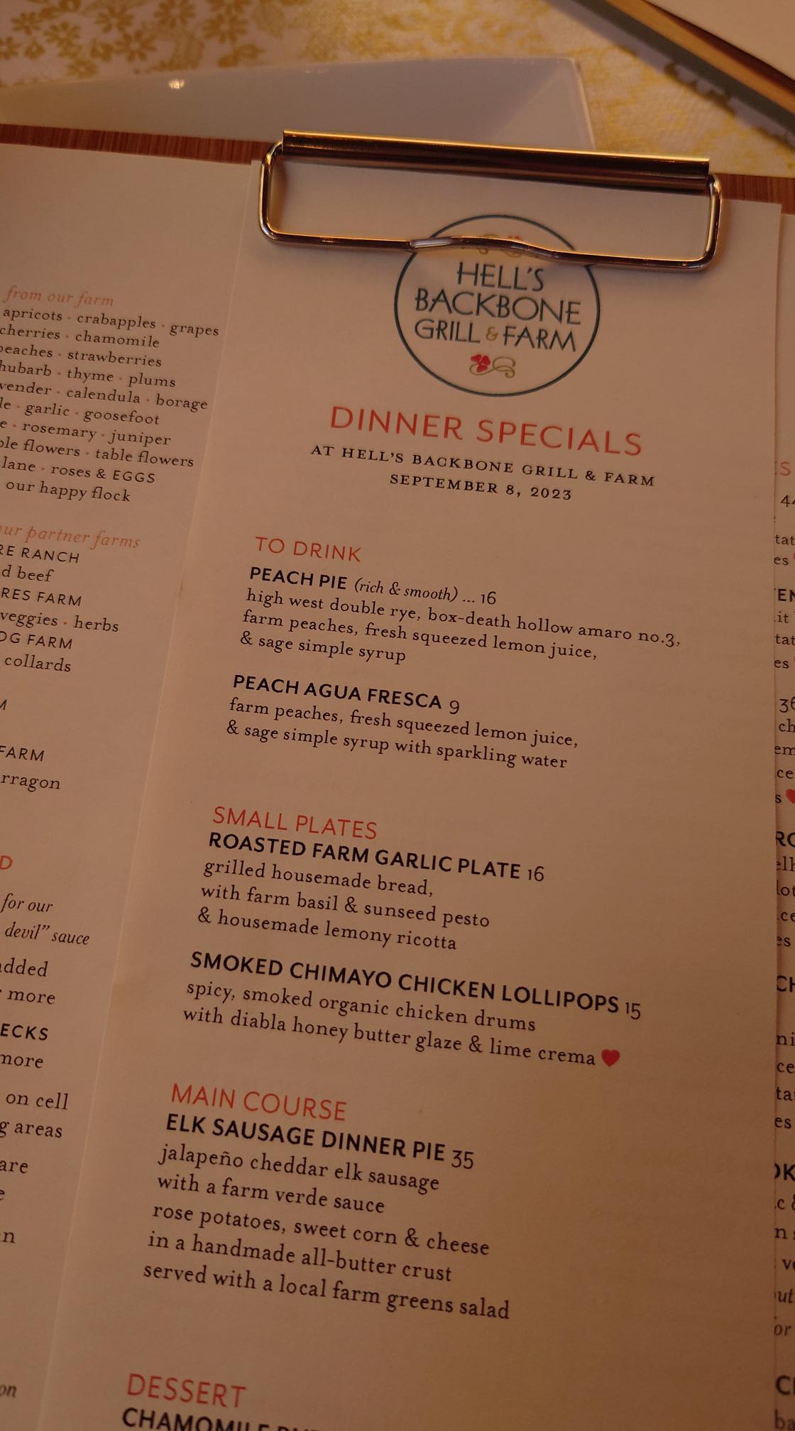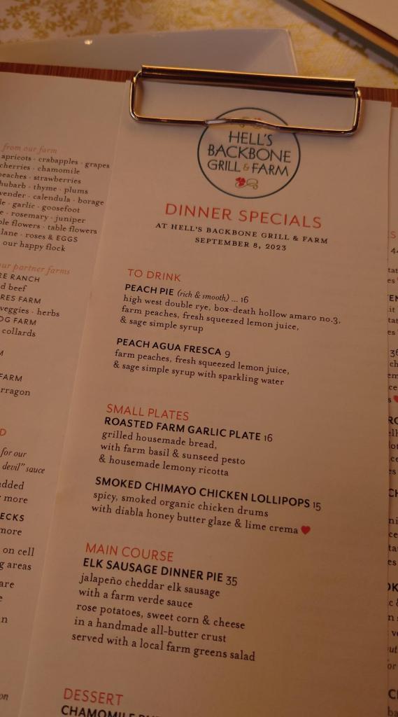 Maar we hebben ook een reservering staan voor Hells Backbone Grill & Bar in Boulder. En daar worden we om half 7 vanavond verwacht. Aangezien we al een forse aanbetaling bij de reservering hebben gedaan, willen we wel op tijd zijn.