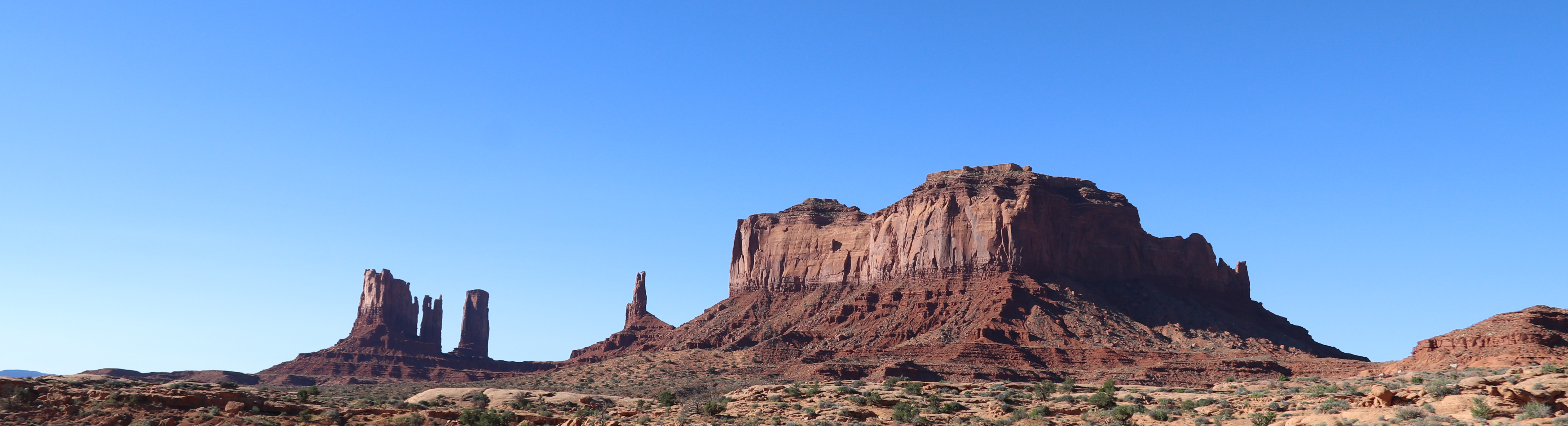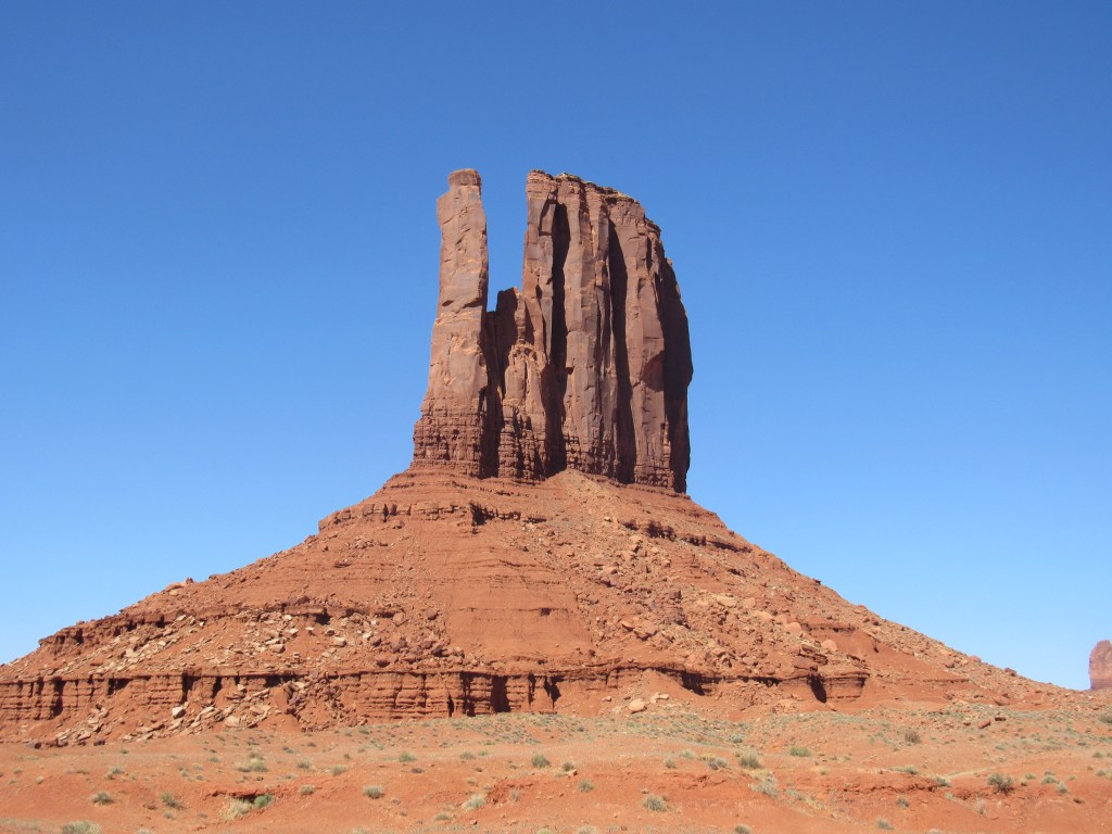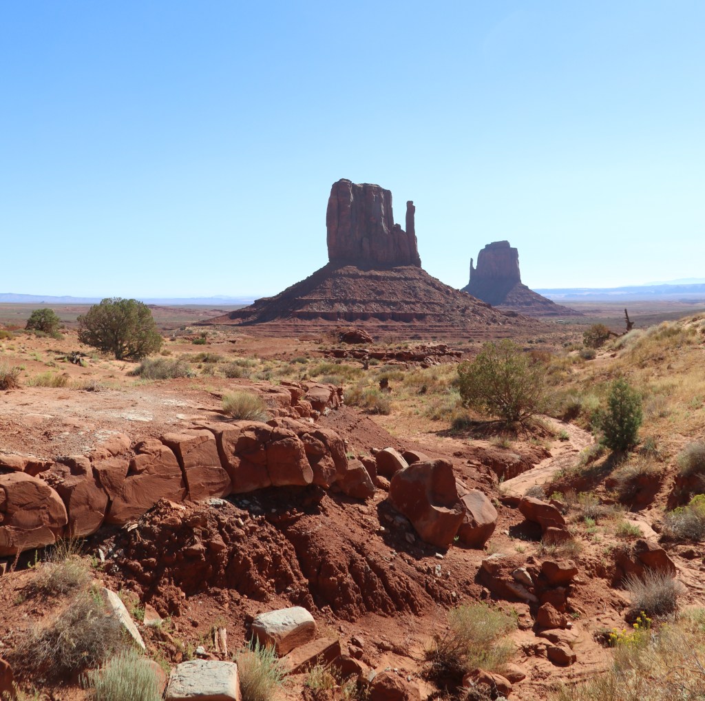 We lopen een loop langs en tussen de East en West Mitten Buttes door. Heel bijzonder om te zo dichtbij te zijn.