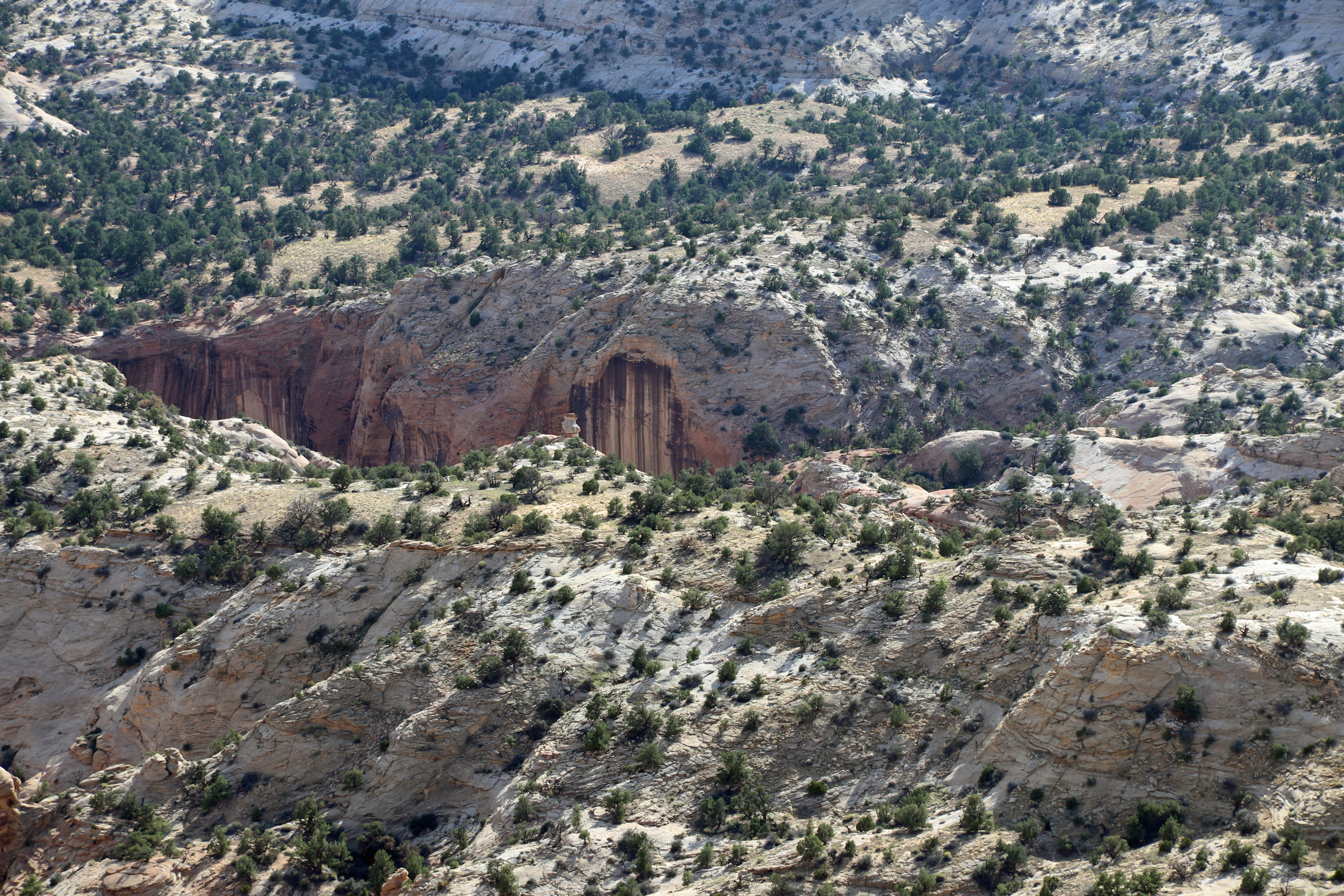 Pas als we bij Hells Backbone Bridge aan komen, hebben we de mogelijkheid om weer van het uitzicht te genieten. En dat is spectaculair hier. We maken de nodige foto’s en rijden dan verder. Na verloop van tijd draaien we de US12 weer op en rijden dwars door het monument. Deze weg is bloedmooi! Sowieso rijden we een stuk over een bergkam, waar je aan beide kanten de afgrond in kijkt. Stoppen langs dit stuk is er niet bij. En als je last hebt van hoogtevrees, dan heb je het slecht op dit stuk. Wel stoppen we nog op verschillende andere plekken. Dit park verveelt nooit!