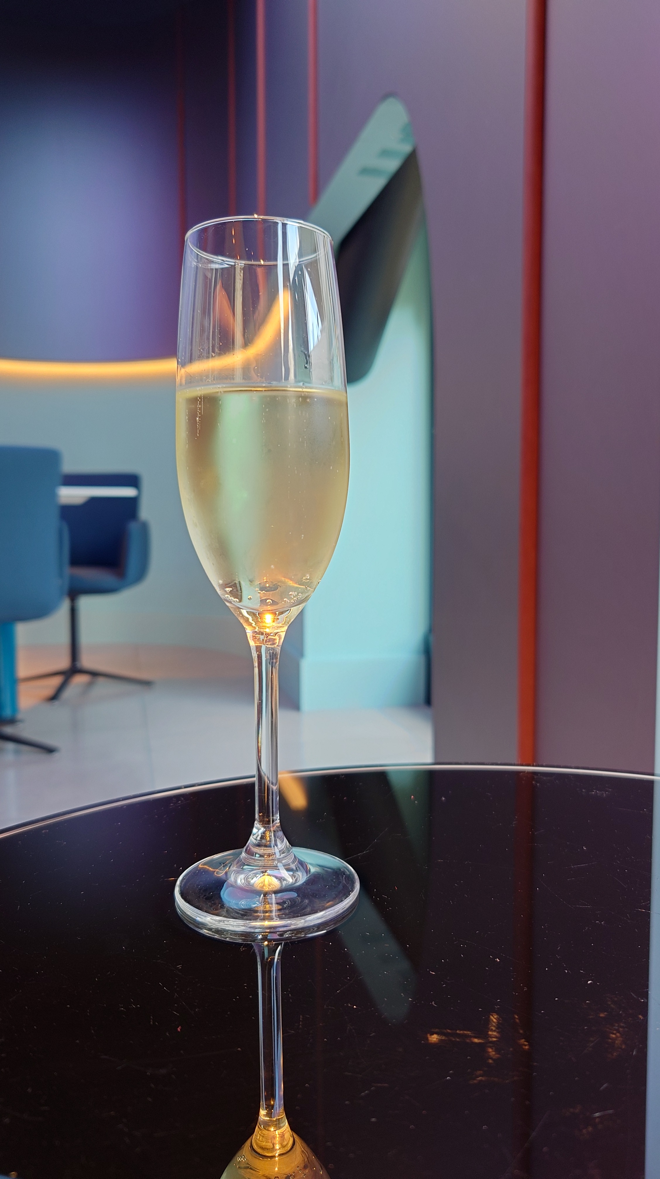 We lopen direct door naar de, jawel, Privium lounge. Daar gaan we de resterende tijd wel doormaken. Omdat het altijd ergens 17 uur is, beginnen we met een glas prosecco. Gewoon omdat het kan. Daarna eten we nog wat en drinken nog een kop koffie.