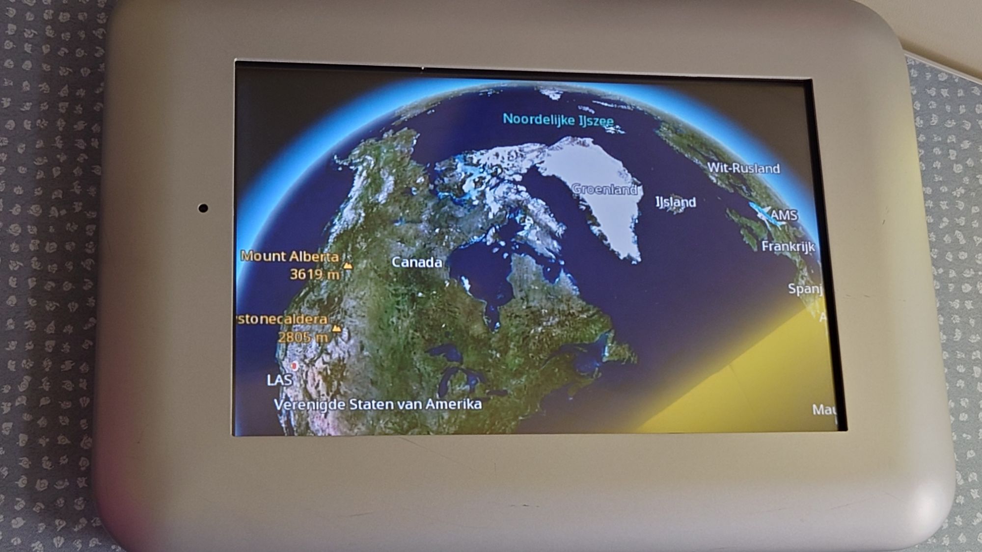 Als we eenmaal op hoogte zijn, halen we de tablets tevoorschijn. We kijken het een en ander, eten wat, drinken wat en kijken nog wat meer. We luisteren wat muziek, kijken maar weer iets op onze tablet en zien de tijd langzaam verstrijken. Allemachtig, wat duurt die rit lang!