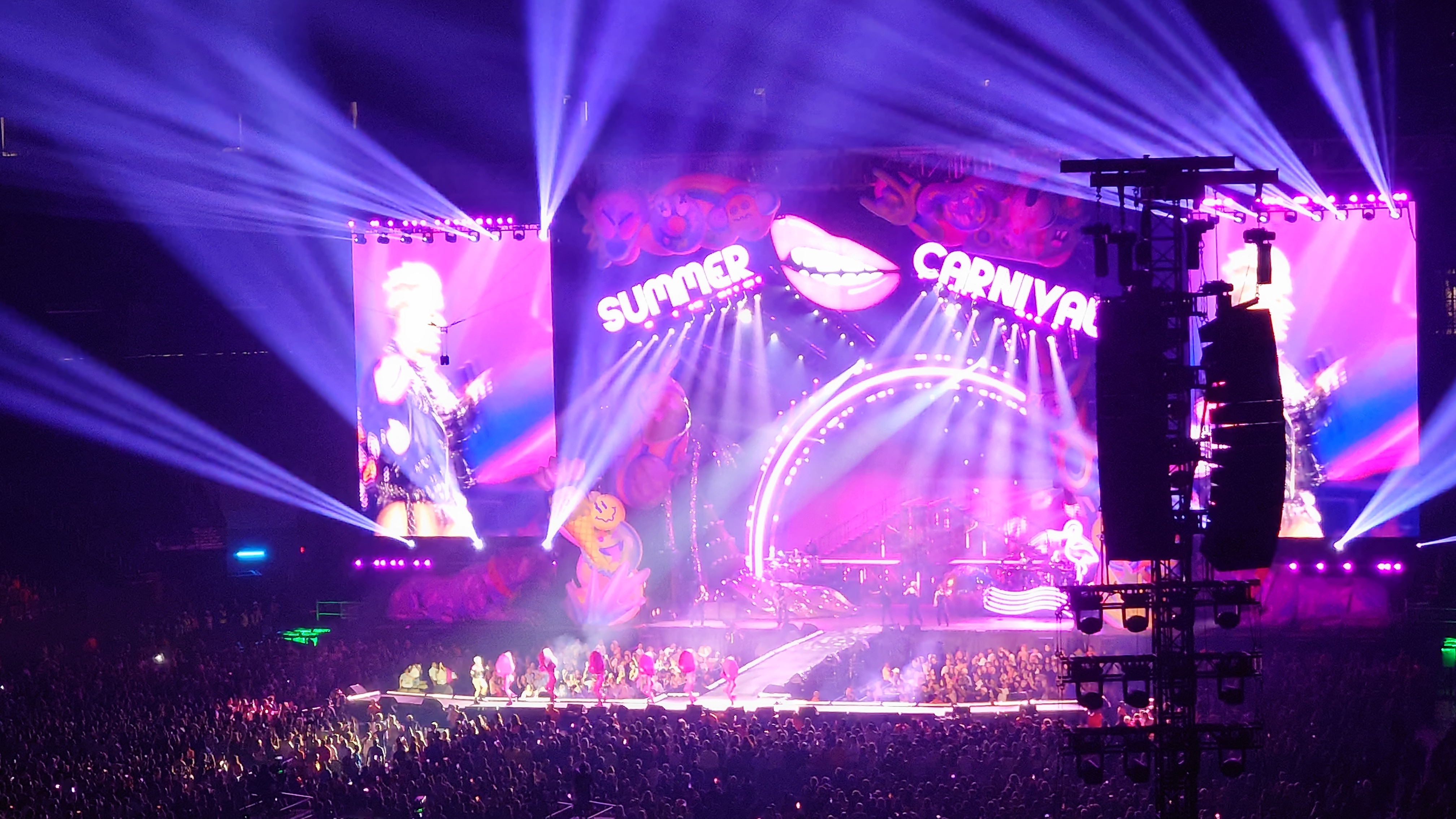 Inmiddels is het 20.30 uur en het publiek wordt lekker opgewarmd met jaren 80/90 muziek. Het publiek zingt dan ook alles mee. Iets na 21 uur komt Pink op en het is meteen spektakel! Wat een feest! Wat een geweld aan muziek en verlichting! Het is in een woord GEWELDIG! Wat een show en wat kan dat mens zingen! Het is oprecht een Summer Carnival. Ze hangt in de trapeze, zingt terwijl ze ondersteboven hangt, terwijl ze danst, over het podium rent of springt! Wat een energie en wat een stem! FANTASTISCH!