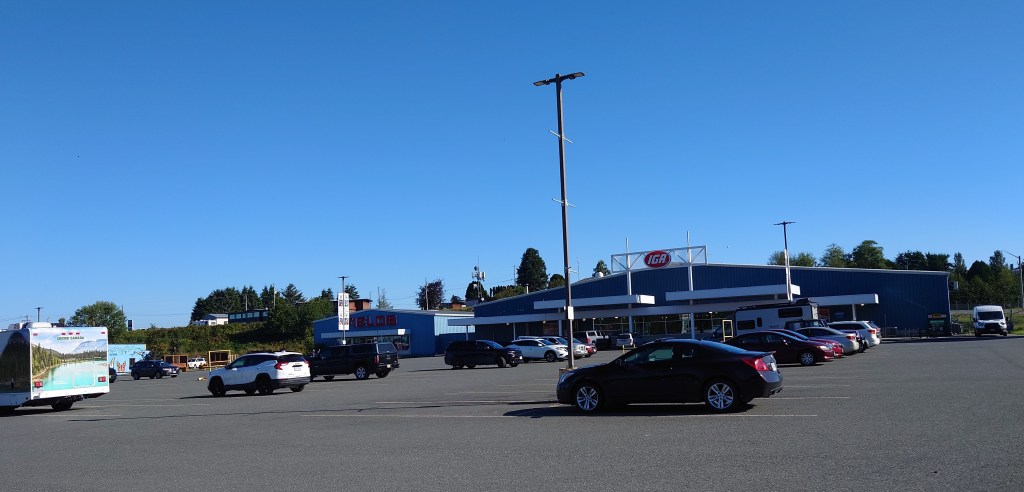 Eindelijk komt Campbell River in zicht en wordt de weg een 4-baans weg. Dat scheelt. We maken een snelle pitstop om wat te eten en rijden dan verder. Als we bijna bij de afslag naar de BC-4 zijn, maken we nog een pitstop bij een rest area. Ook hier blijven we niet lang.