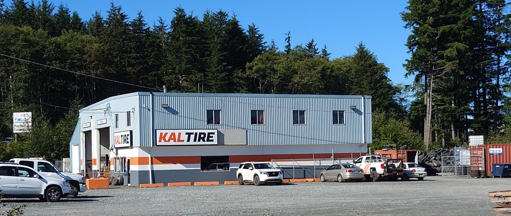We laten alles wat afkoelen en rijden dan terug. Een check zegt dat het inderdaad de verkeerde maat is en nadat Ryan van Kal Tire klaar is met zijn verontschuldigingen aanbieden, blijkt de juiste band niet op voorraad te zijn. Maar hij gaat voor ons bellen naar Port Hardy, daar zit een andere zaak.