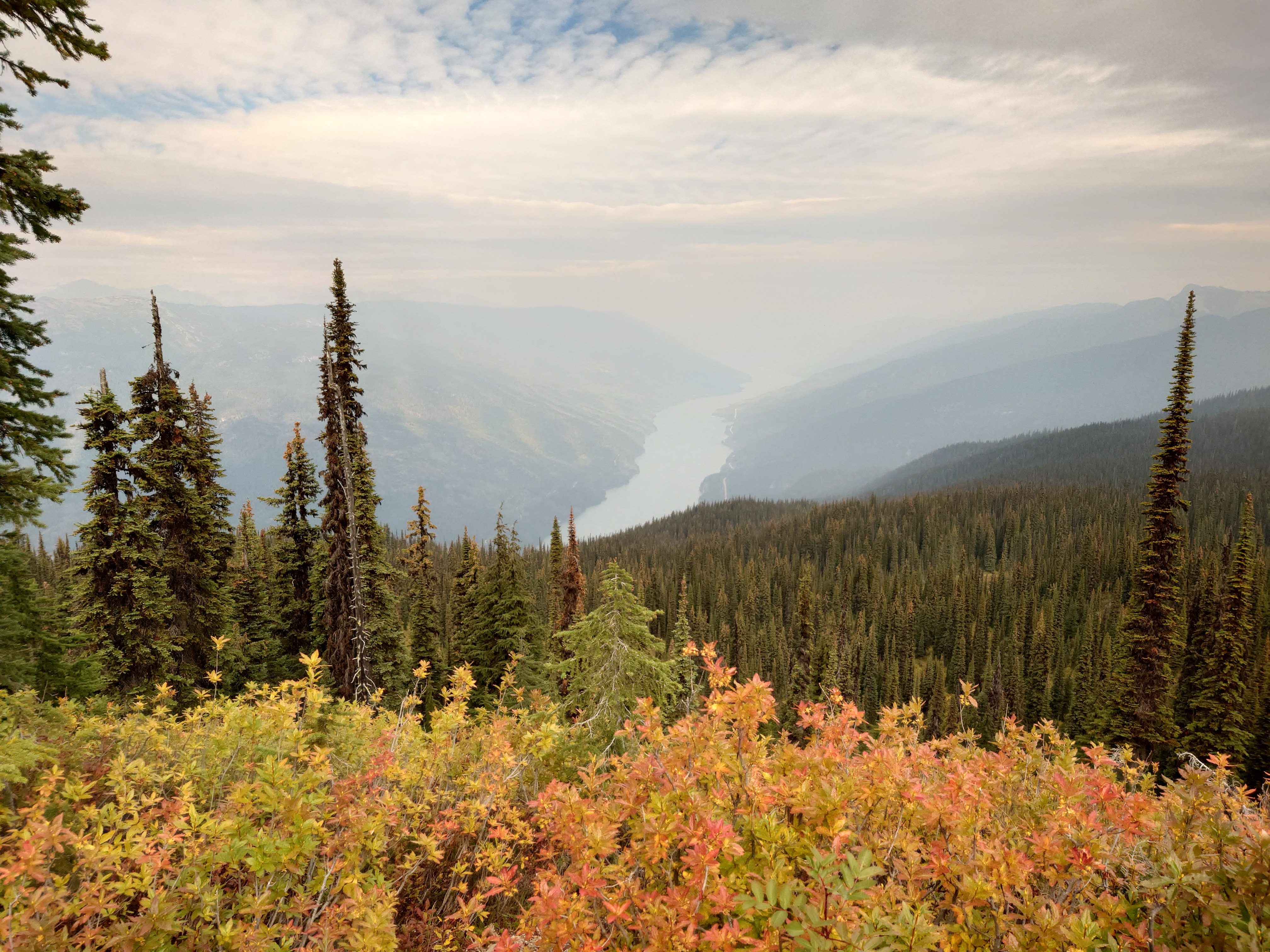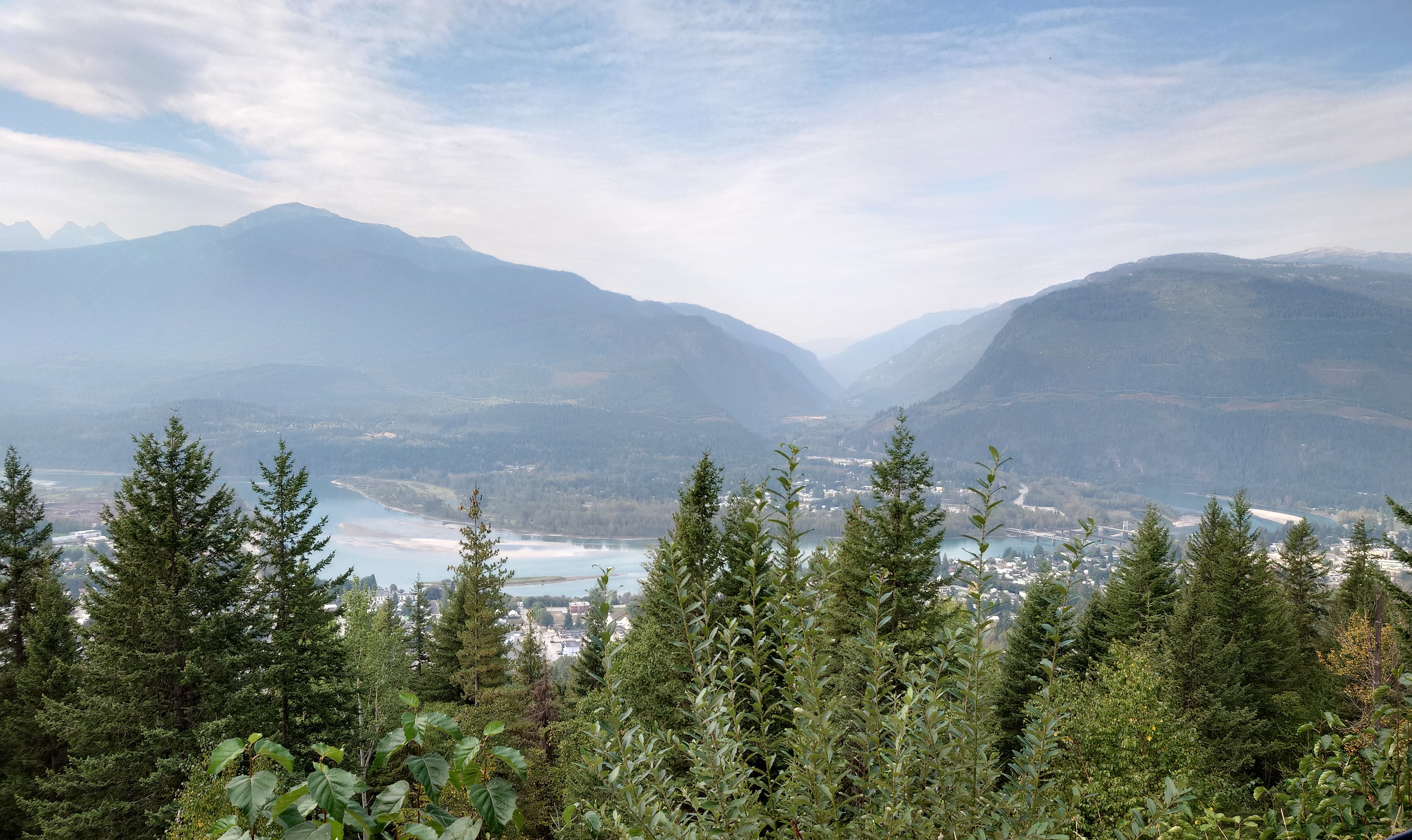 Nadat we hebben betaald, rijden we de ‘Meadow in the Sky Parkway’. We stoppen bij het eerste uitzichtpunt waar we uitkijken over het plaatsje Revelstoke. Hier staat ook een waarschuwing voor een ‘bold black bear’, wat door ons vrij vertaald wordt naar een brutale zwarte beer.