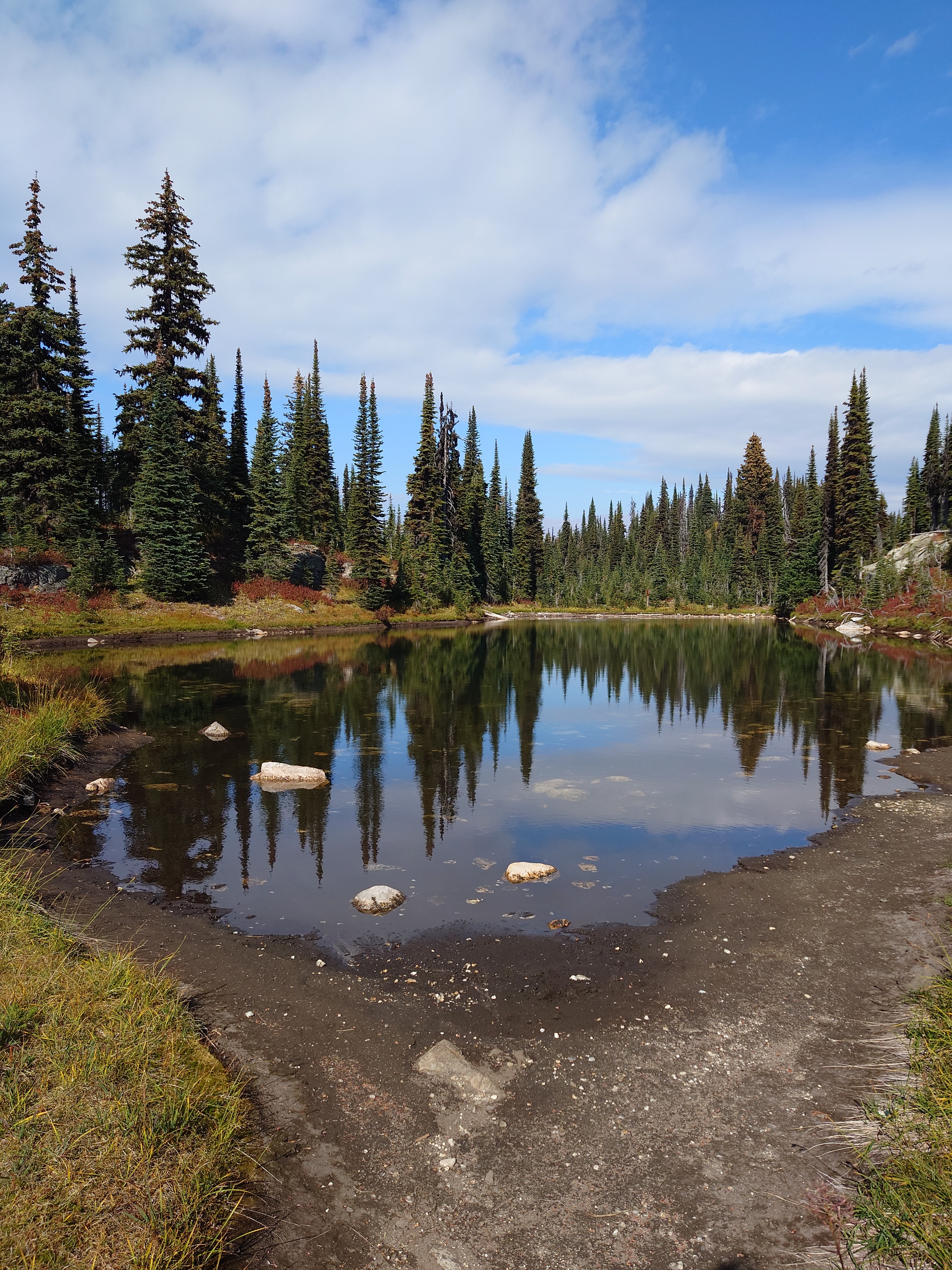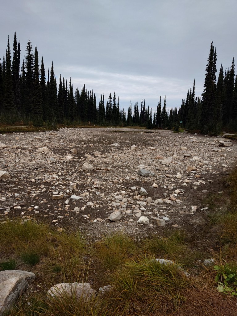 We lopen dan maar een andere richting uit. Eerst rondom Balsam Lake, een poel die in juli en augustus helemaal vol staat met smeltwater. Inmiddels zien we dat de poel steeds kleiner begint te worden, tot ie uiteindelijk verdwijnt en volgend jaar weer in volle glorie wordt gevuld.