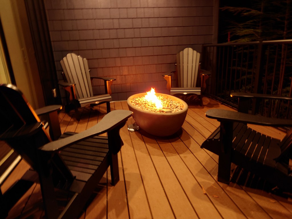 Ziet er wel lekker cosy uit met die vuurkorf op het deck!