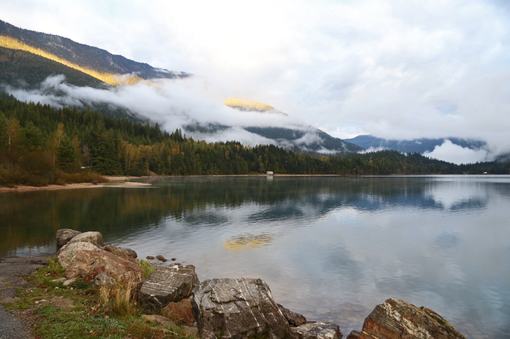 Als eerste maken we een stop in Revelstoke. We moeten tanken en ijs hebben. Dan gaan we op weg. Voorlopig rijden we dezelfde route als gisteren. Lekker handig, want nu weten we waar we vertraging gaan oplopen door werkzaamheden.
