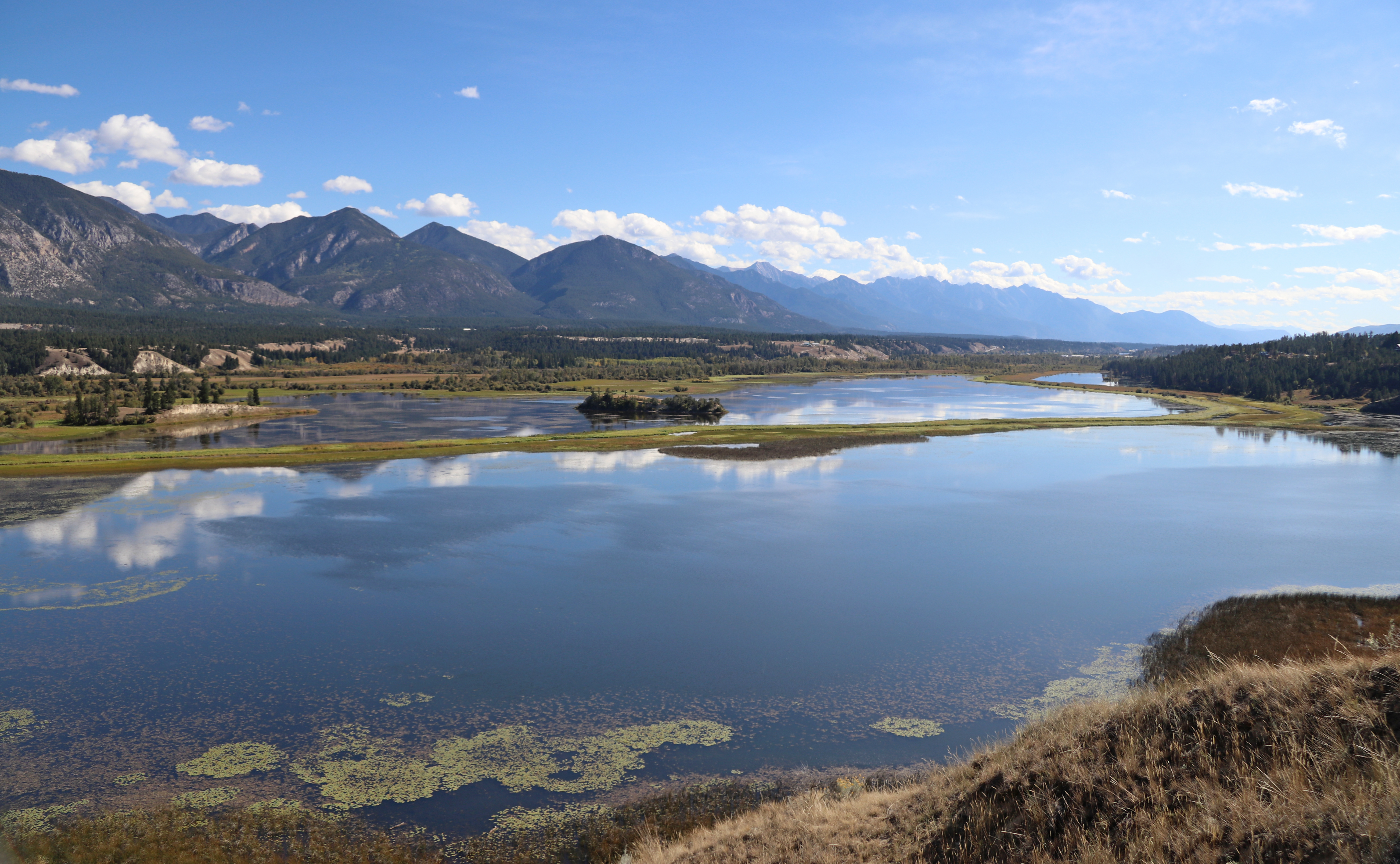 Bij Invermere slaan we af richting Wilmer Wetlands. Al een hele tijd rijden we langs wetlands, maar ook nu missen we viewpoints op veel plekken.