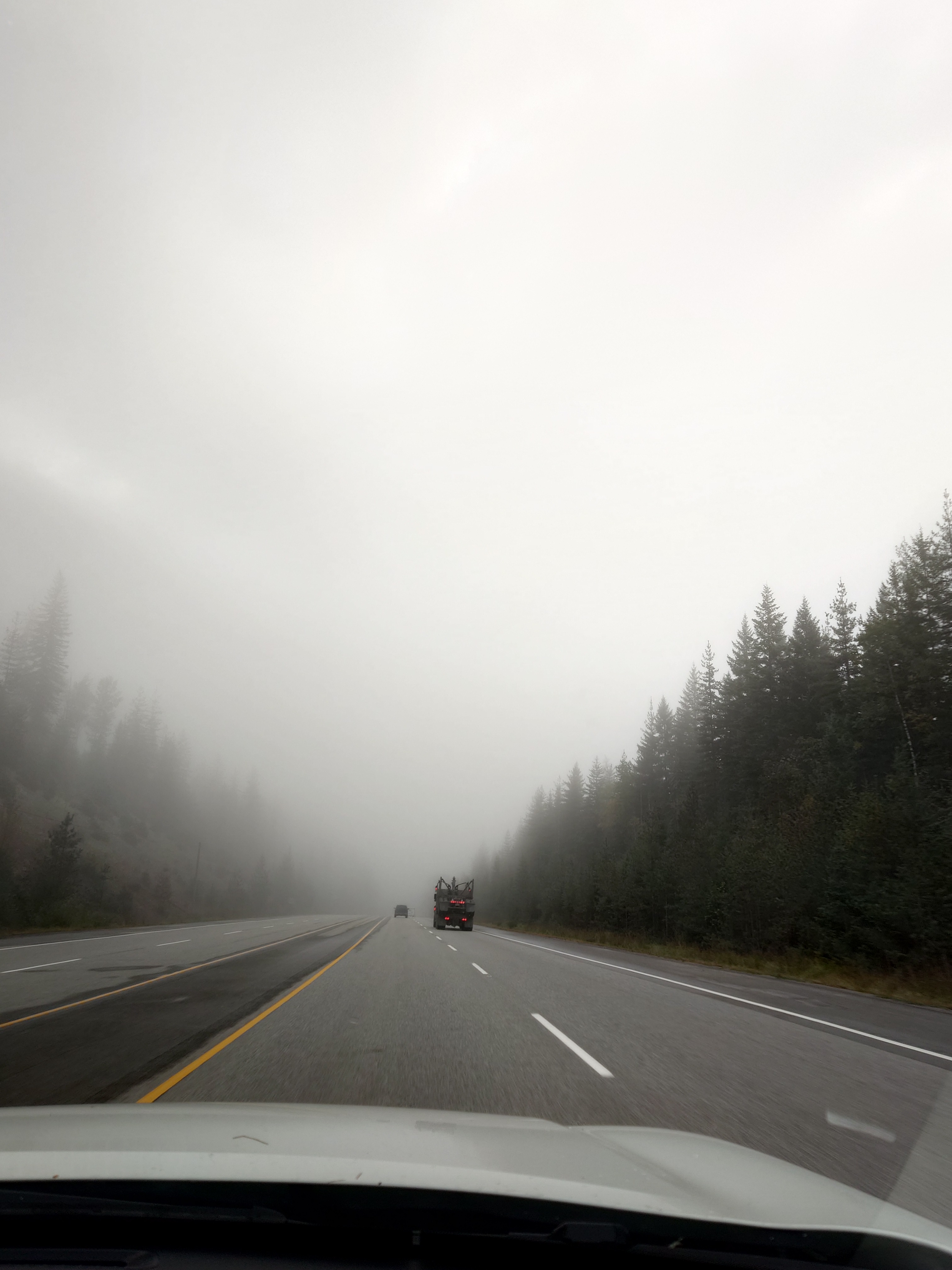 Eindelijk kunnen we doorrijden en vanaf dat moment gaat het soepeltjes! De route die we rijden, is vandaag geweldig mooi! Half bewolkt, half zonnig met mist. Het is veel mooier dan gisteren. Het is ook een stuk rustiger op de weg.