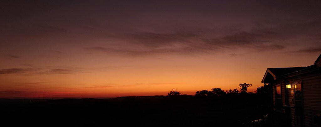 We zijn weer vroeg vandaag. Iets over zevenen staan we allebei op. Het eerste wat we doen, is uit het raam kijken hoe de zonsopgang is. Ook vandaag lijkt het een mooie te worden.