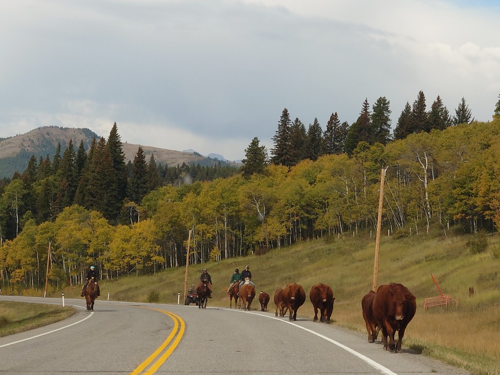 Bar U Ranch is een ranch uit de 1800’s. In de glorietijd bestond het uit 160 duizend en nog wat hectare en hadden ze 30.000 stuks vee en 1000 werkpaarden. Een gigantische ranch, dus. Het valt onder de Nationale Parken en aangezien we toch een pas hebben, gaan we binnen een kijkje nemen.