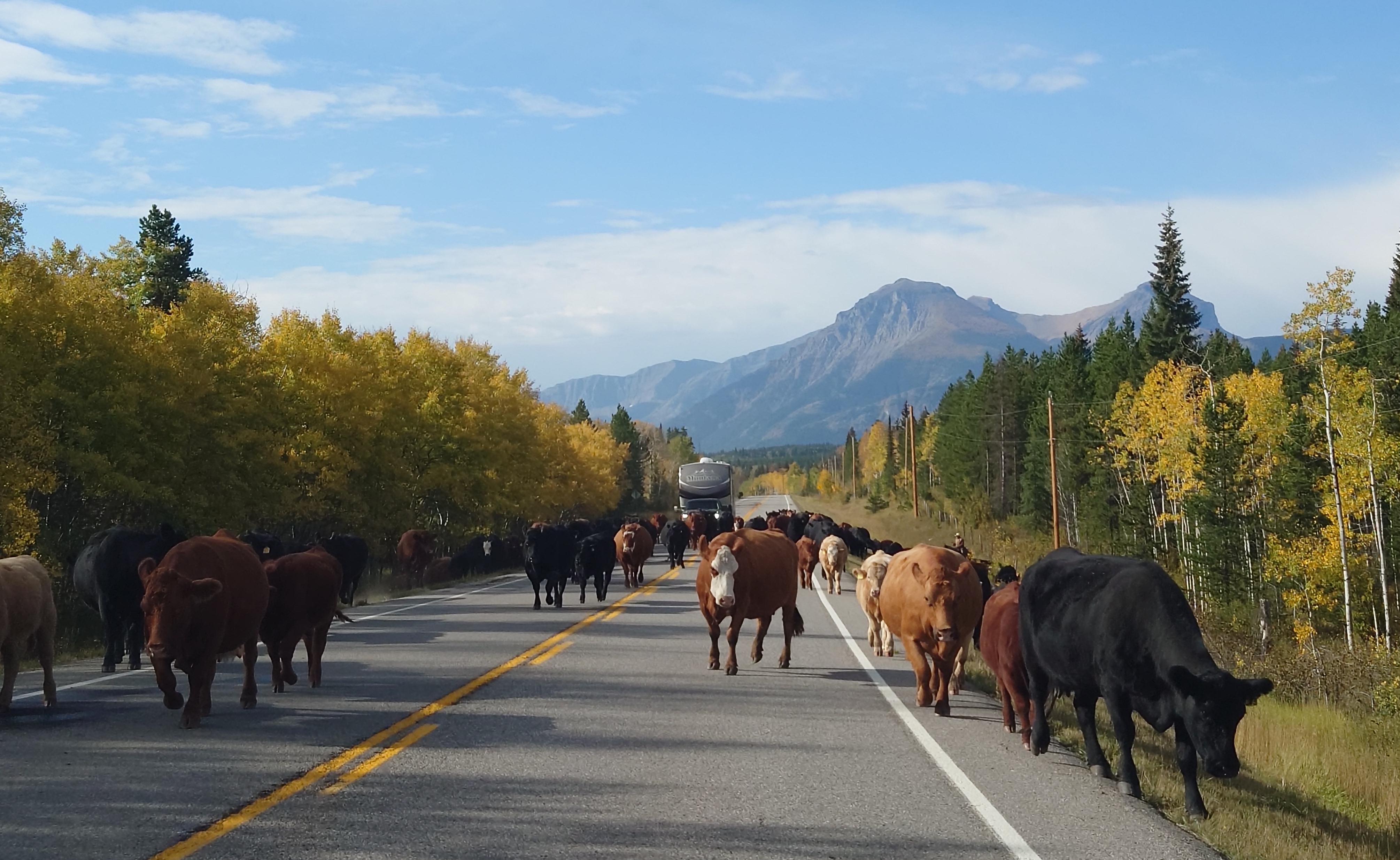 Bij Longview slaan we af naar de 547. Was de rit tot nu toe heuvelachtig en landbouw, hier zien we het langzaam veranderen. De heuvels worden hoger, de bergen beginnen zich weer te laten zien. Hier zien we langzaam aan ook de bomen en dus de herfstkleuren verschijnen.