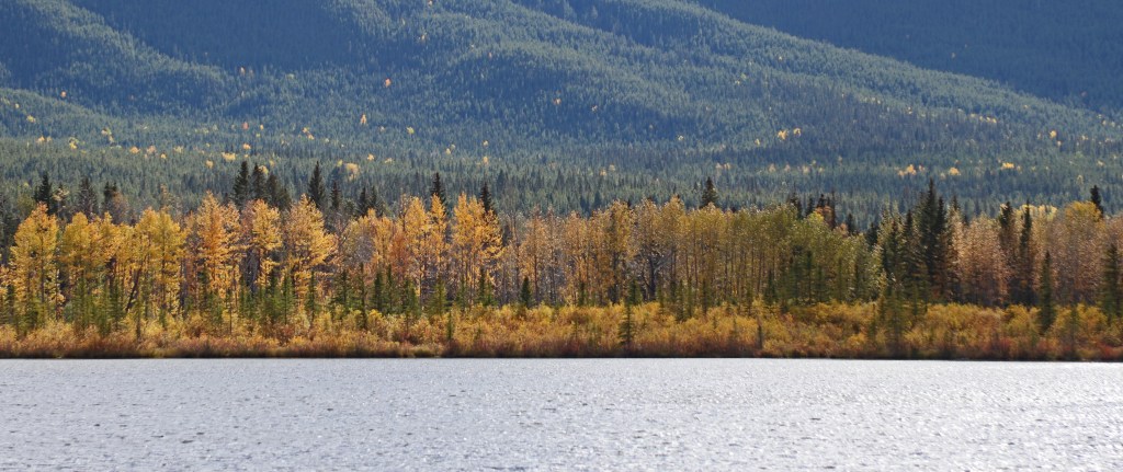 Hier en daar stoppen we voor foto’s. Iedere stop. maar ook als we rijden, kijken we goed om ons heen of we beren zien. Er wordt volop voor gewaarschuwd, maar tot zover spotten we niets.