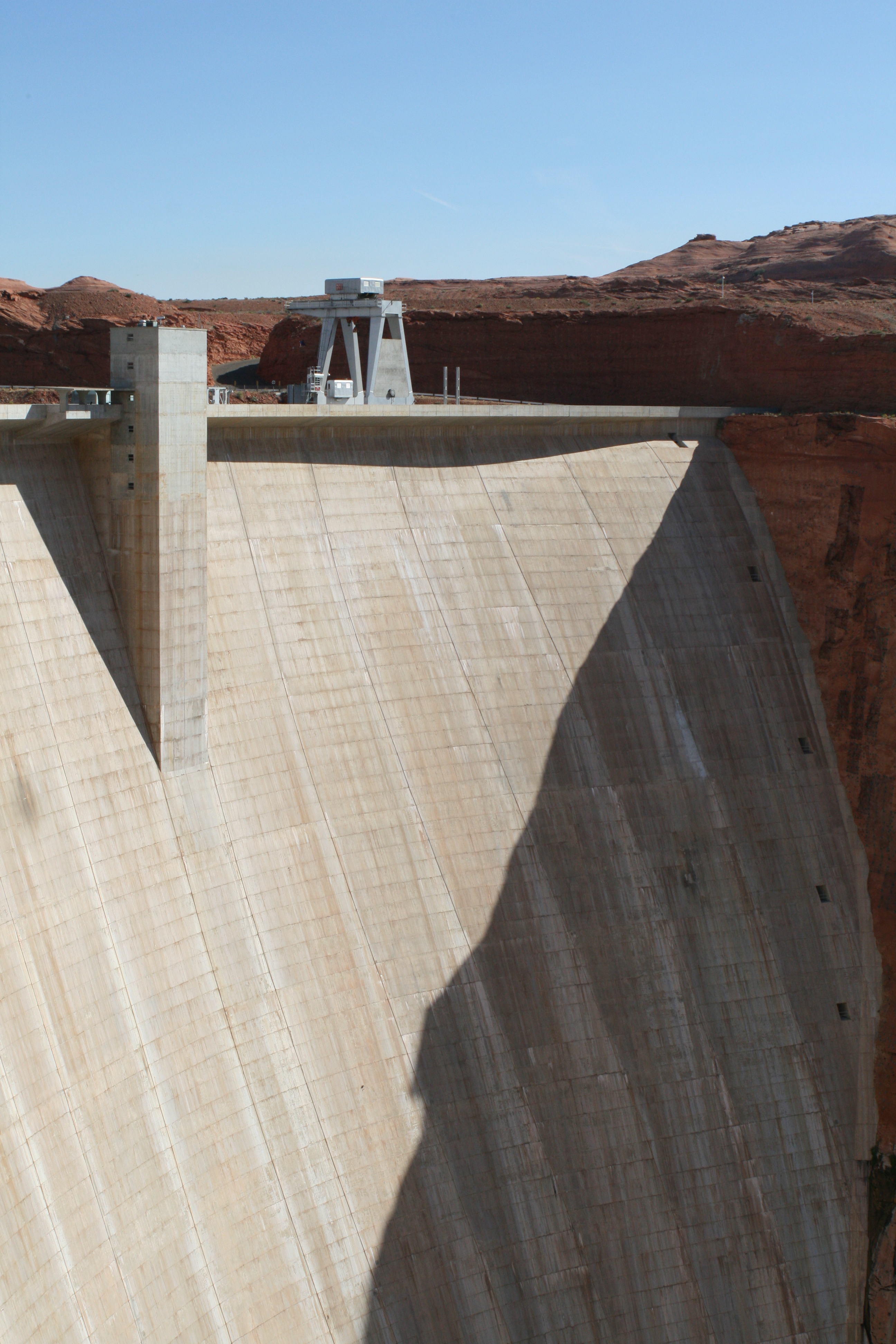 Ook vertelt de gids dat het normaal gesproken altijd heel warm is onder aan de dam door de opname van warmte in het beton. Om deze warmte tegen te gaan, hebben ze een zeer ingenieus systeem bedacht, nl. een grasveld! Ongelooflijk maar waar. Het gras is kunstmatig aangelegd en dient niet alleen om de warmte tegen te gaan, maar ook om het stof tegen te gaan.