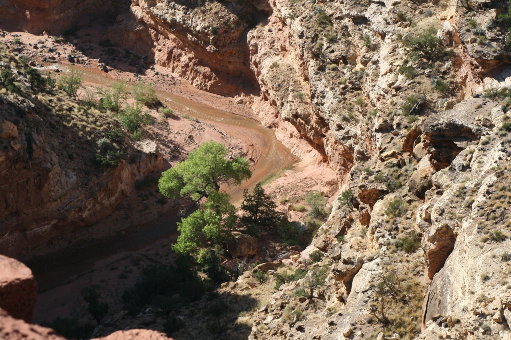 Als we op weg gaan naar Capitol Reef, rijden we door een omgeving die zeer zeker de moeite waard is. Maar inmiddels is lunchtijd al weer voorbij en we hebben honger, dus gaan we op zoek naar een picknicktafel.