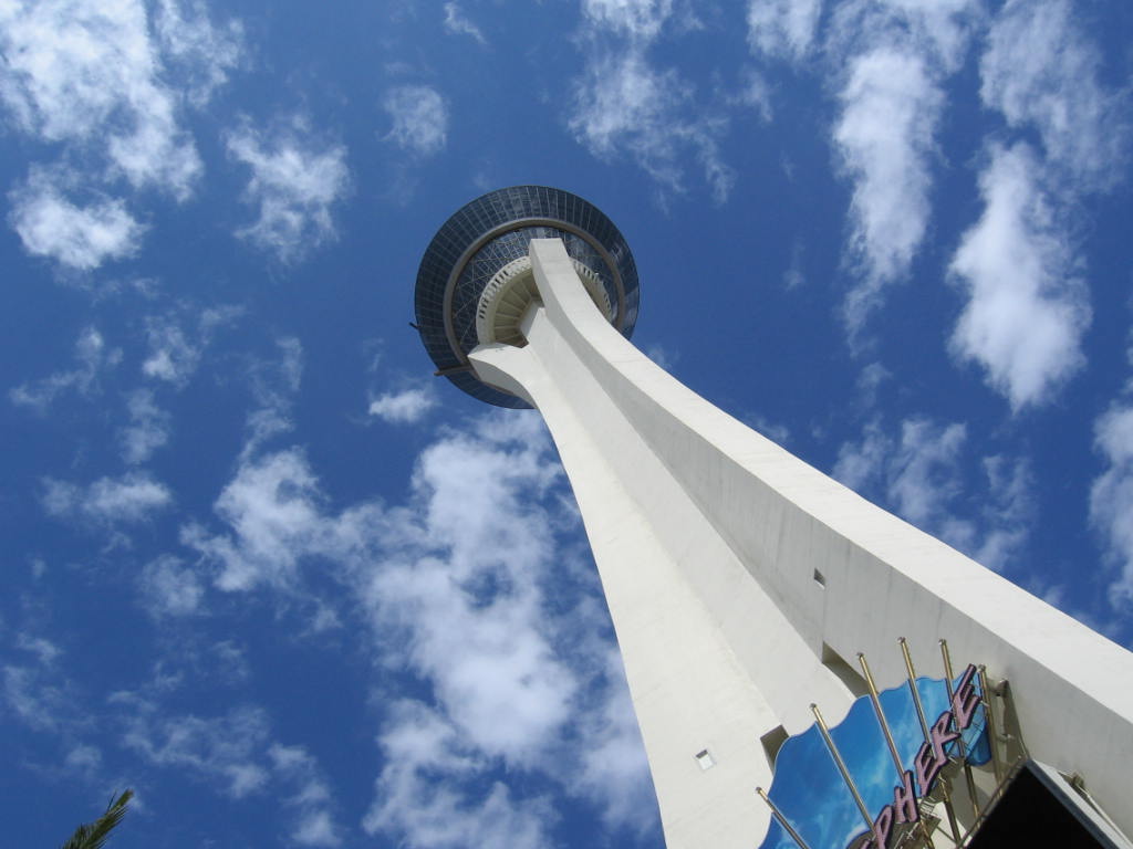 De rit naar Vegas is slaapverwekkend. Maar uiteindelijk zien we van mijlenver al de Stratosphere Tower. Vol goede moed gaan we op zoek naar het winkelcentrum aan de noordkant van Vegas. Tja, dat is lastig te vinden zonder navigatie. Maar niet getreurd, hoor. Aan de zuidkant zit er ook één, dus we besluiten om eerst te gaan inchecken en de bagage uit de auto te halen en daarna verder rijden. Maar één ding zijn we vergeten en dat is het vrijdagmiddag verkeer!