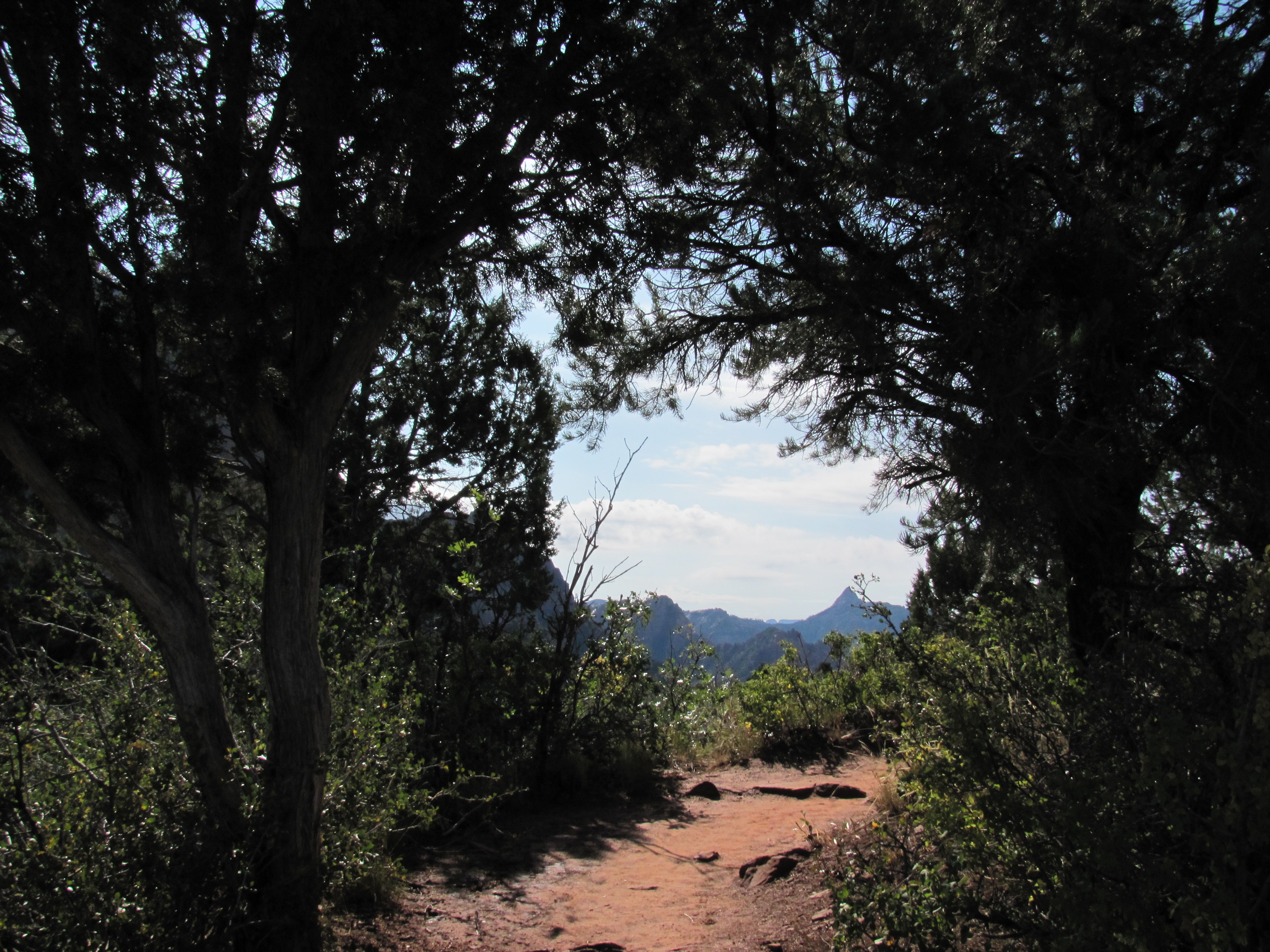 Vanaf dit punt zou je Angels Landing in Zion kunnen zien en we denken ‘m gevonden te hebben. Deze trail hoop ik ooit nog eens te lopen. Niet alleen vanwege de zwaarte, maar ook vanwege de lef. Het eerste gedeelte van deze trail loop je zigzaggend de berg op, daarna begint het. Via kabels en kettingen loop je verder naar boven, steil omhoog. Als laatste loop je over een smalle richel en dan heb je een gigantisch uitzicht over Zion NP!