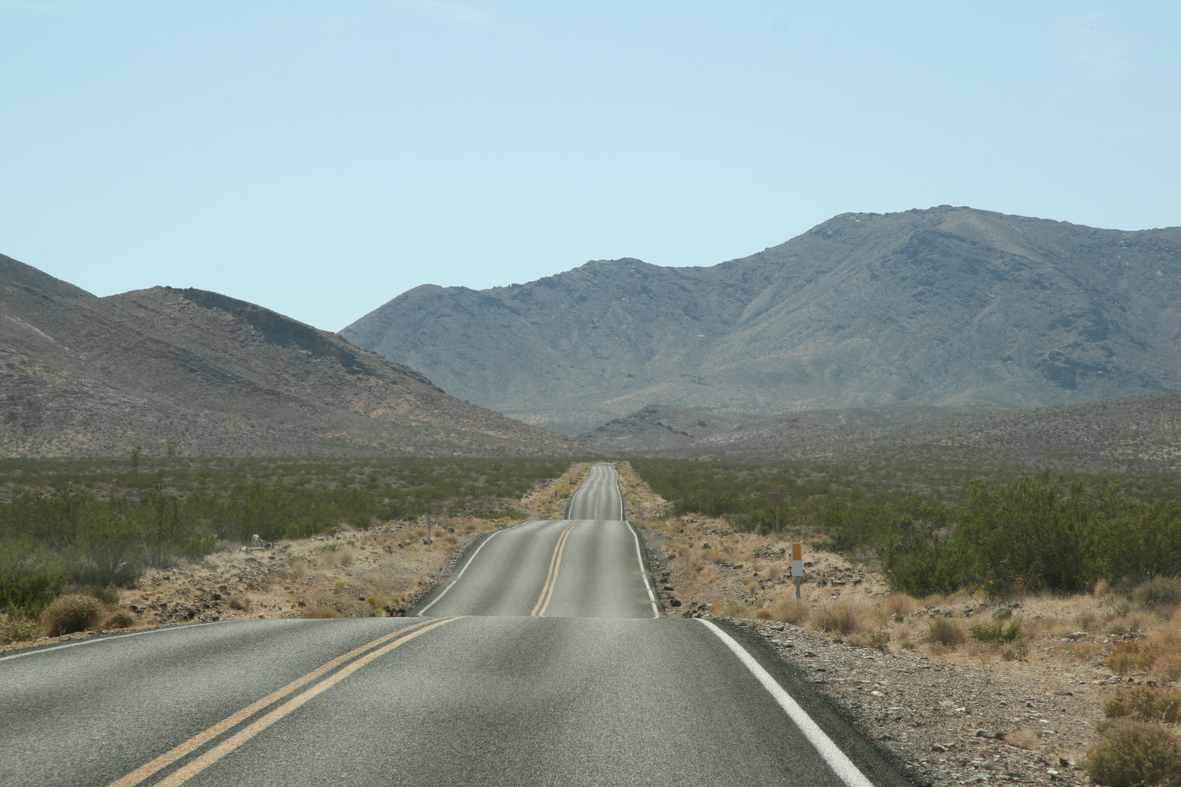 Drie keer is inderdaad scheepsrecht, want vandaag houdt niets ons tegen. We hebben weer een strakblauwe lucht en de weg voor ons zindert gewoon van de hitte. De verwachte temperatuur vandaag is rond de 104 graden Fahrenheit.
