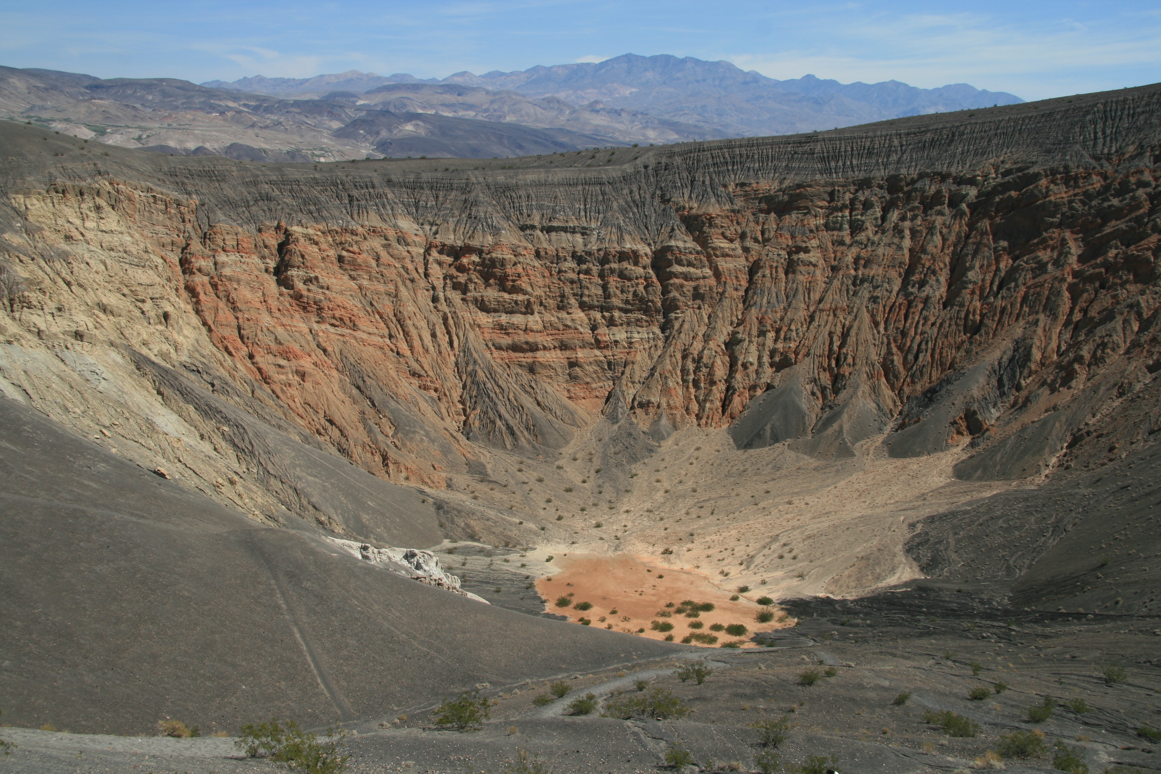 Als Monique ook weer terug bij de auto is, gaan we op weg naar Ubehebe Crater. Een gigantische krater! We staan even van bovenaf te kijken en duiken dan snel de auto weer in.